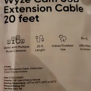 Ever struggled with a short power cable that limits where you can place your Wyze Cam? The Wyze 20ft USB Extension Cable solves that problem by giving you extra length to position your camera exactly where you want. Whether you have a Wyze Cam v2, v3, Pan, or Floodlight model, this cable plugs right into your existing USB-A power adapter to extend its reach. It supports 5V/2A charging, so your devices get the power they need without any hassle. Perfect for hard-to-reach spots or creative setups, this cable also works with smartphones and other USB-powered gadgets. The box includes one 20-foot USB extension cable—no power adapter included. Ready to extend your charging options and free your setup? Grab this handy cable and enjoy versatile placement with no compromises!