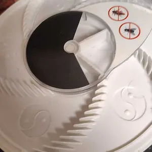 Has not caught one fly in a week.tested it in the horse barn, which has plenty of flies. Thereās no bait that comes with it. Used the stinky hanging bag bait that catches flies very well. This thing is a complete waste of money believe the spinning motion of it scares them away.