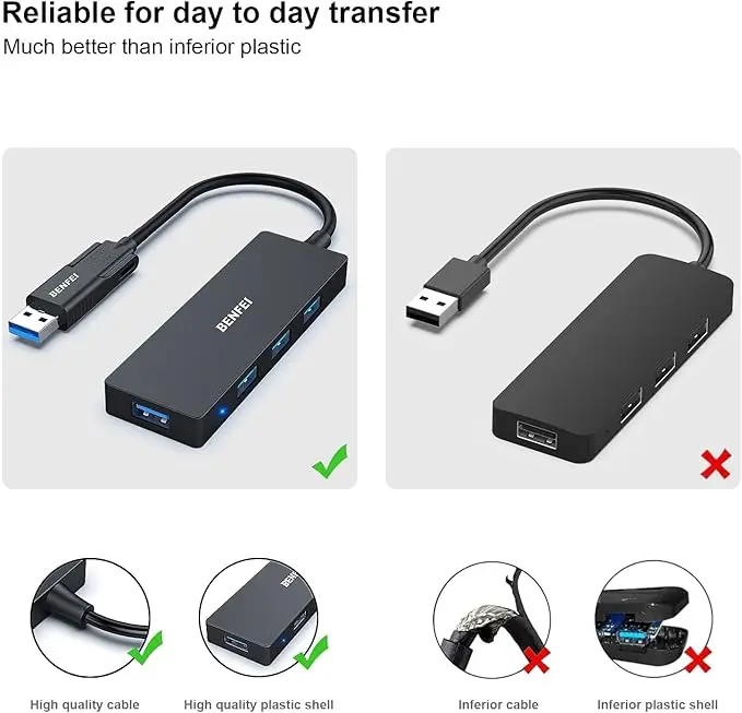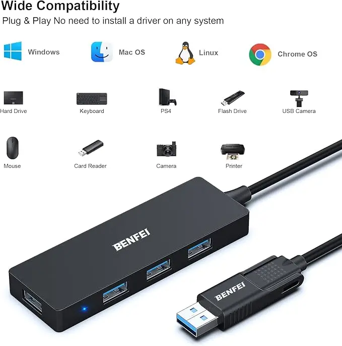 BENFEI USB 3.0 Hub, 4 Ports USB Splitter Ultra-Slim for Mouse, Keyboard, Flash Drive, U Disk, Printer for Laptop, PC, Xbox, PS5, and MoreBENFEI USB 3.0 Hub, 4 Ports USB Splitter Ultra-Slim for Mouse, Keyboard, Flash Drive, U Disk, Printer for Laptop, PC, Xbox, PS5, and More