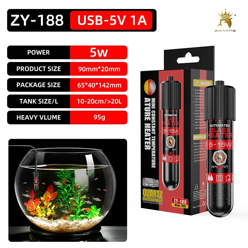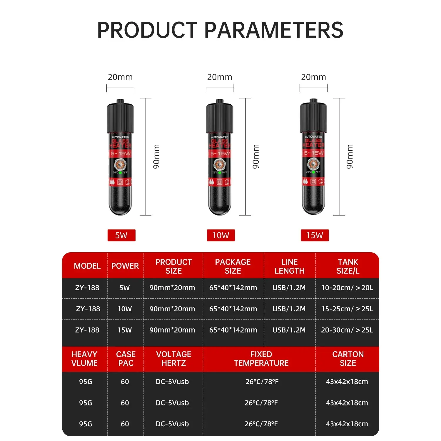 USB interface 5W 10W 15W mini heating rod low water level turtle betta automatic constant temperature heating