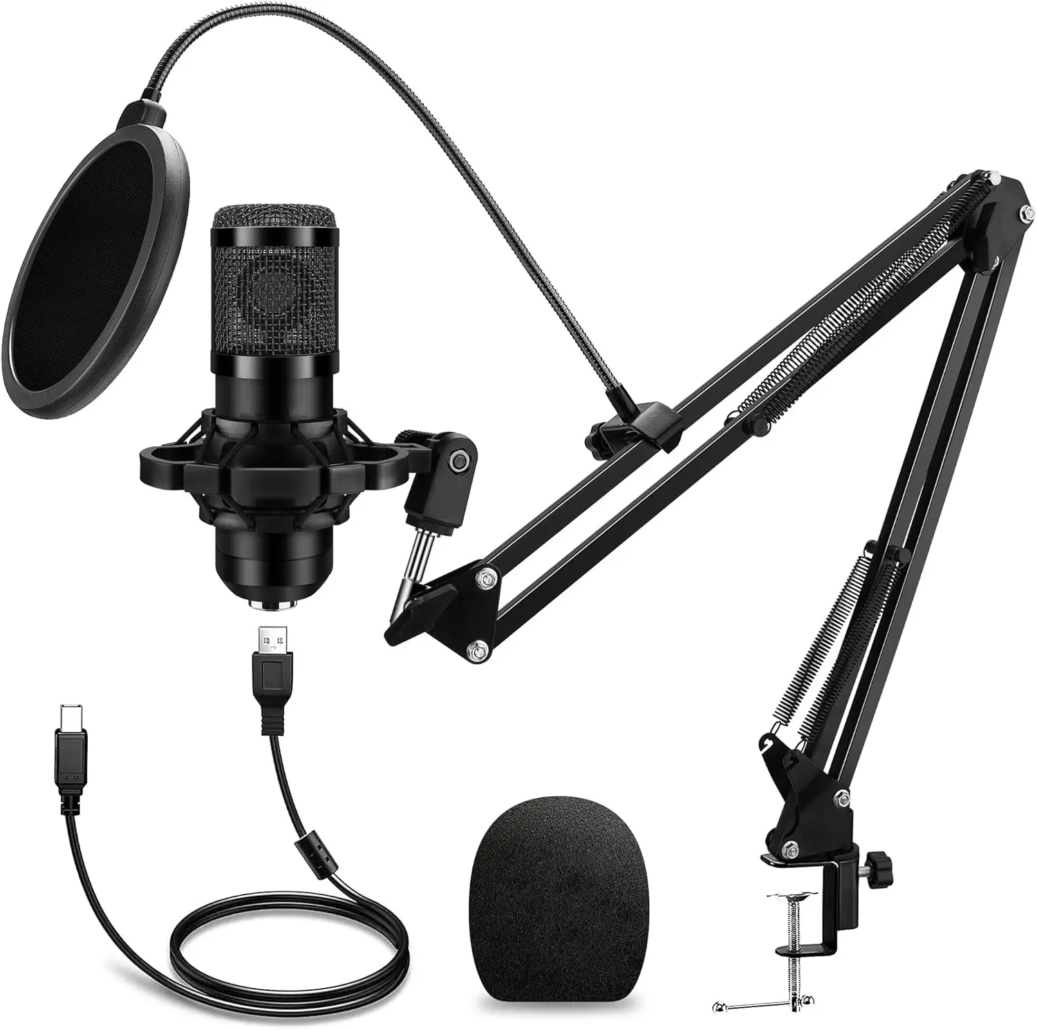 ·Computer Microphone,Recording microphone kit is available high quality metal rod body, and equipped with shockproof frame and omnidirectional adjustable cantilever bracket stable C fixture, easy installation, flexible use can achieve multiple Angle adjustment.
