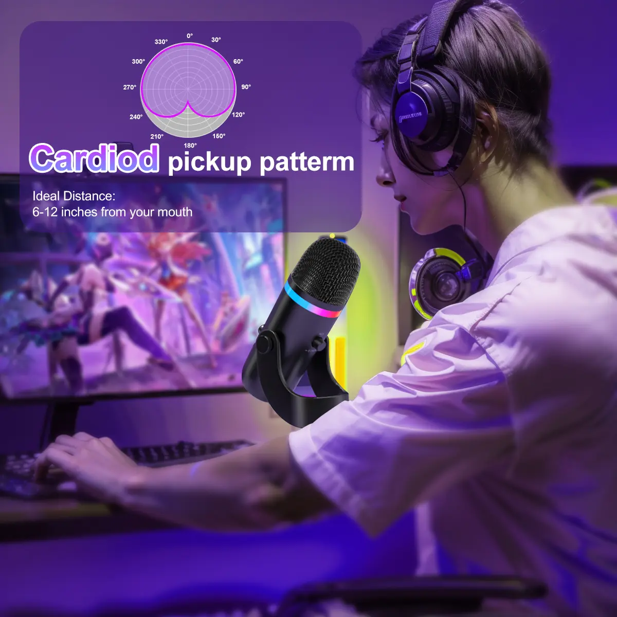 Upgrade your gaming or streaming setup with customizable RGB lighting. This microphone features 7 modes, including 4 static colors and 3 dynamic gradients. Press the RGB button to cycle modes or hold to turn off, customizing the look to your style.