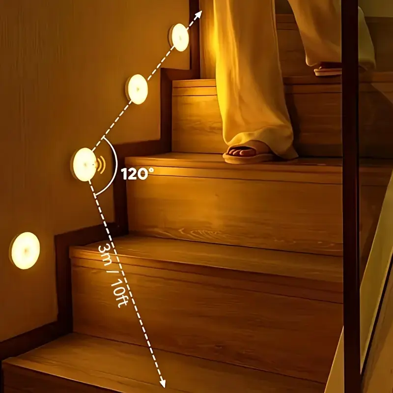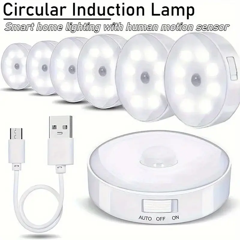3/6pcs USB Round Motion Sensor Lights with Adjustable Brightness, Touch Control & Wall-Mountable Design - Rechargeable Battery-Powered Lighting for Toilets, Cabinets, Stairs, Corridors, Office Spaces