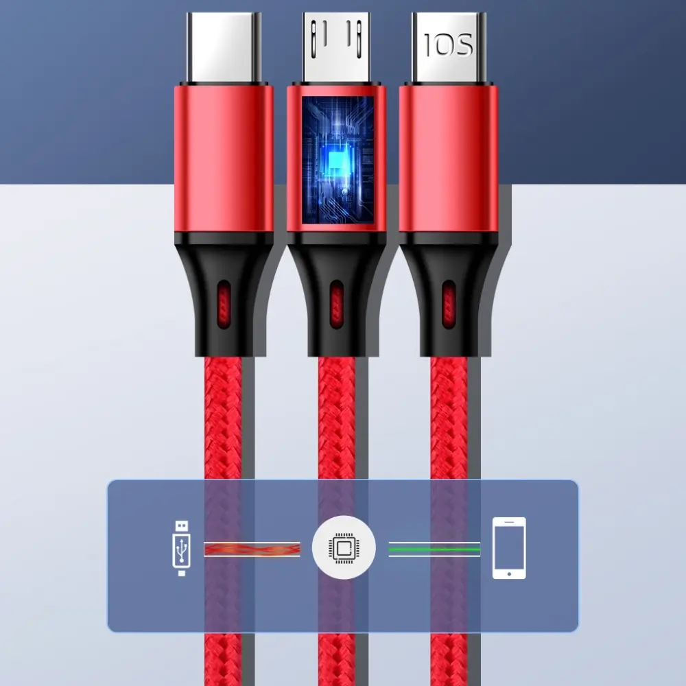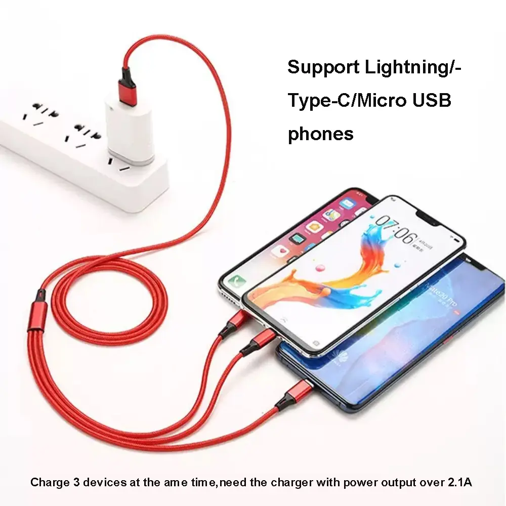 ·[3 in 1 Multi Charging Cable] This 3 in 1 usb multi charging cable integrates Lightning, Type-C and Micro USB ports, don't need to purchase multiple different charger cords. Whether you have a new or older iPhone model, or any other device with a Micro USB port, this all in one charger has you covered. This multiple charger cord greatly saves you time in choosing a charging cable and saves space on your desktop, in your car and in your bag, so you can say goodbye to hard choices and clutter