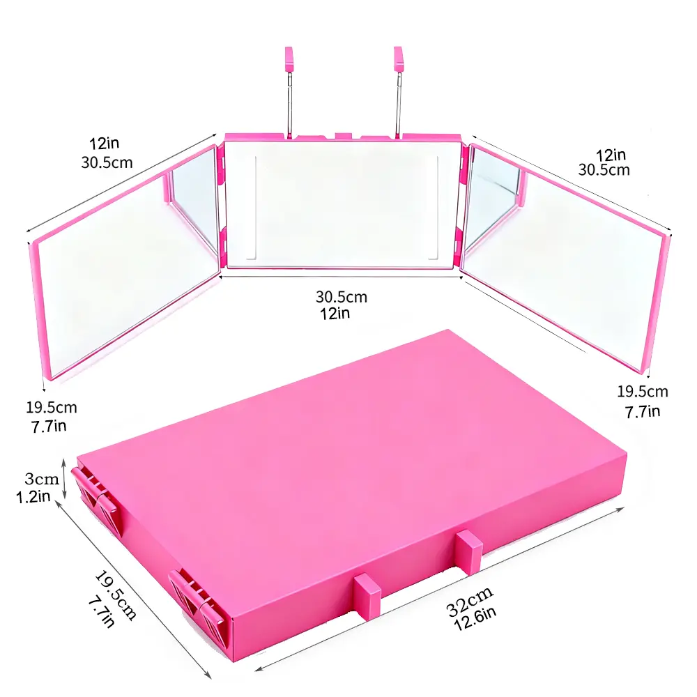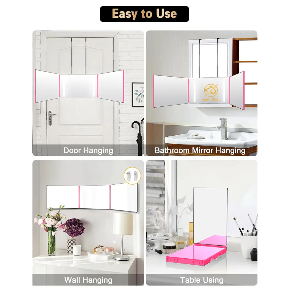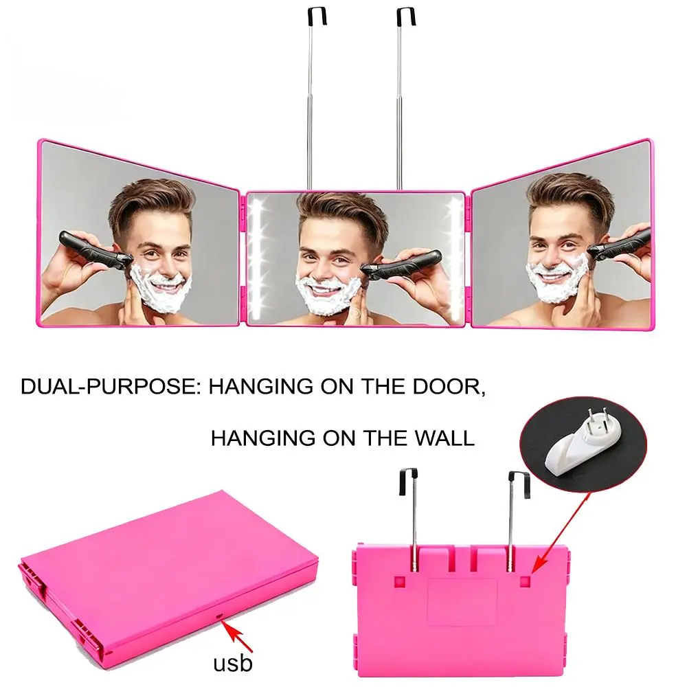 USB Rechargeable LED Makeup Mirror 3 Way 360 Trifold LED Mirror For Hair Cutting Wall-Mounted With Adjustable Lights Ideal Gifts For Men Women