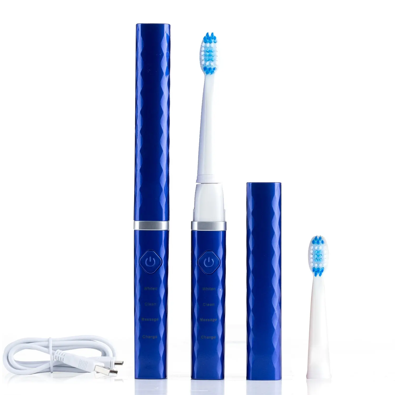 1 USB Sonic Toothbrush, 1 replacement brush head, USB charging cord, instruction manual.