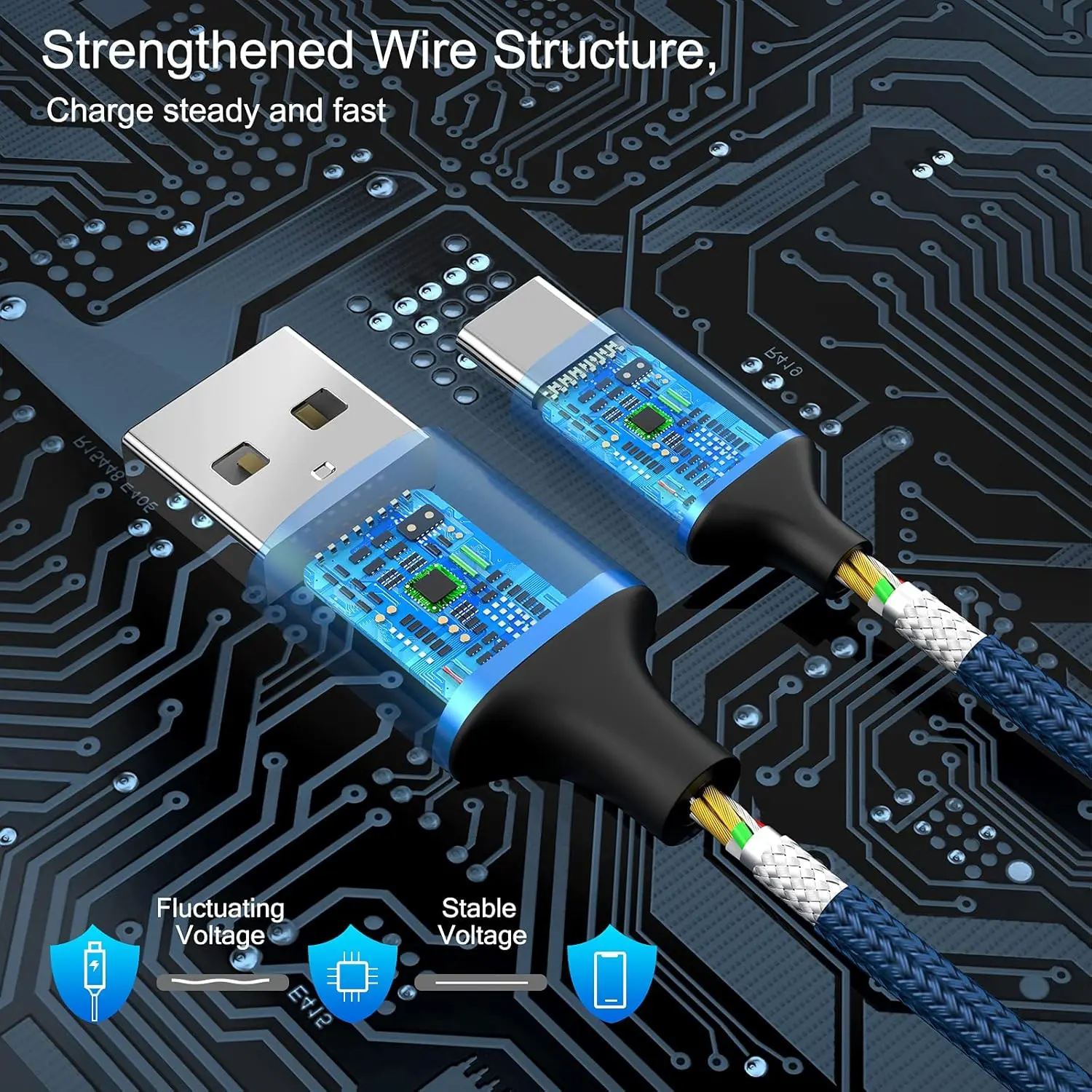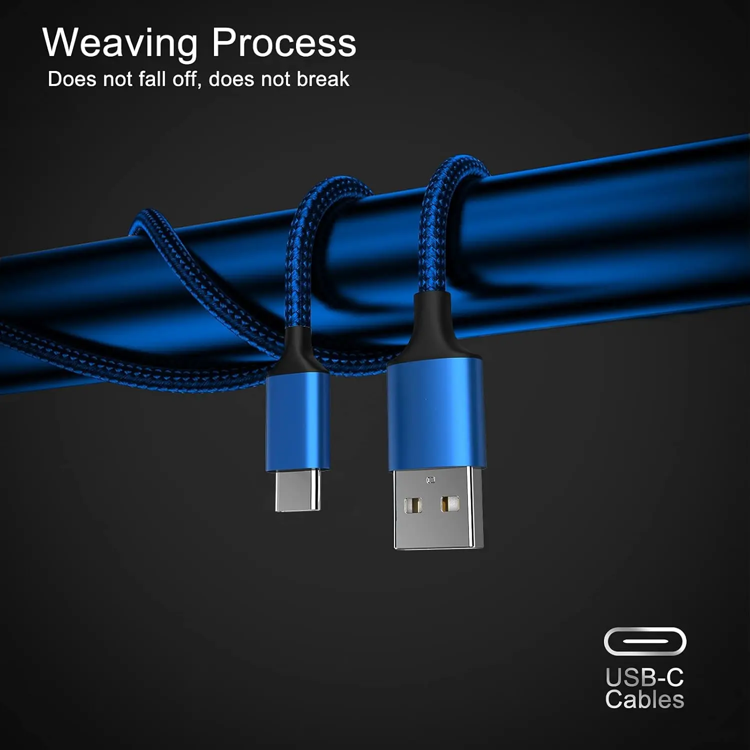 USB Type C Cable 5Pack (3/3/6/6/10FT) Nylon Braided USB C Cable Fast Charger Charging Cord Compatible Samsung Galaxy S9 S8 Note 9 Note 8 Plus,LG V30 G6 G5 V20,Google Pixel, Moto Z2, iPad 2021and More