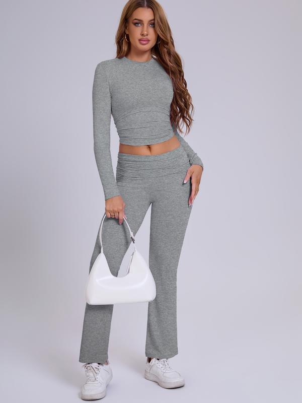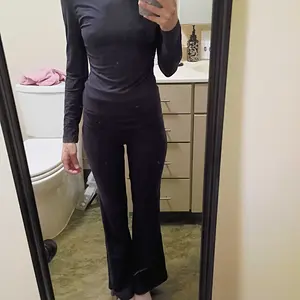 This is the perfect two piece set for a cold day you get a long sleeve shirt and stretchy yoga pants