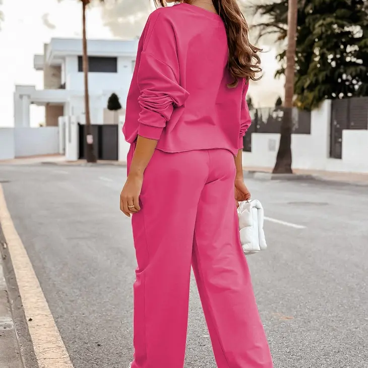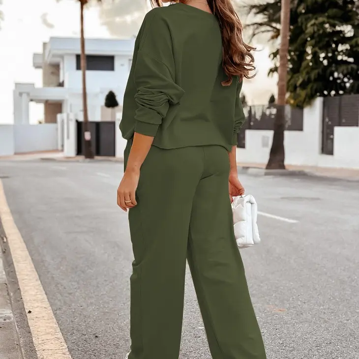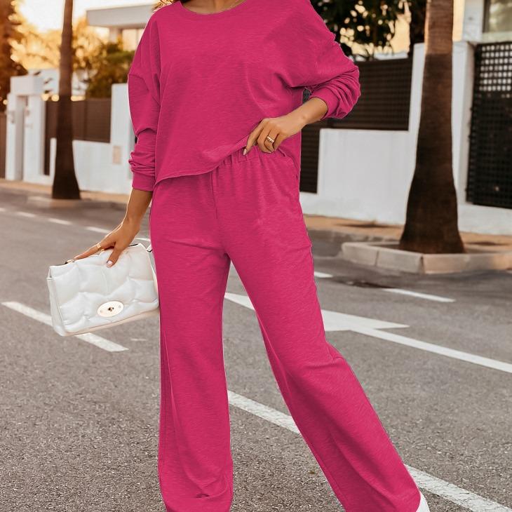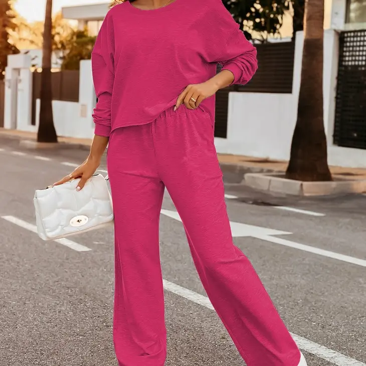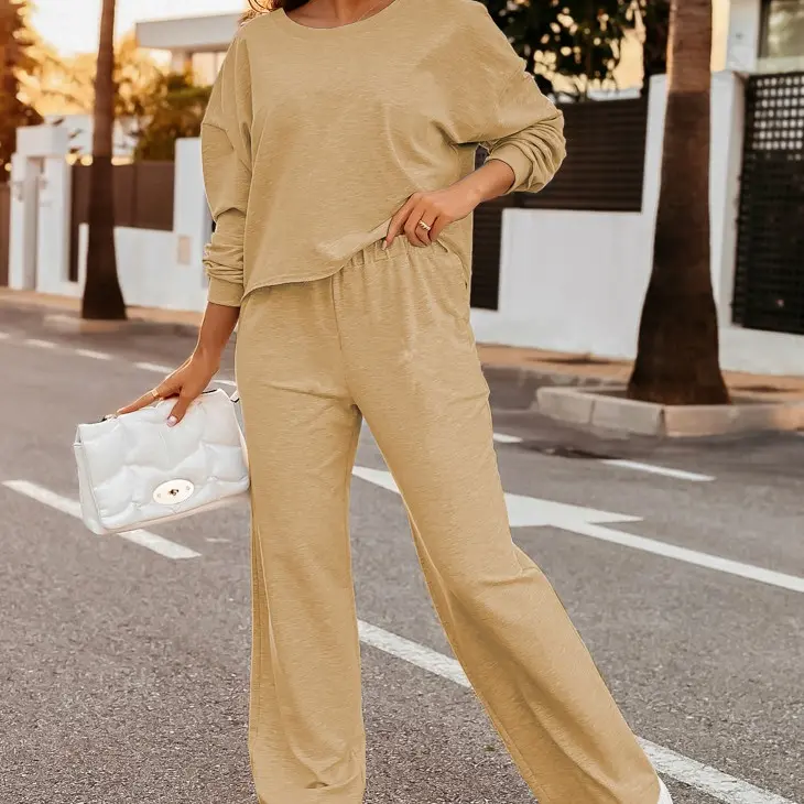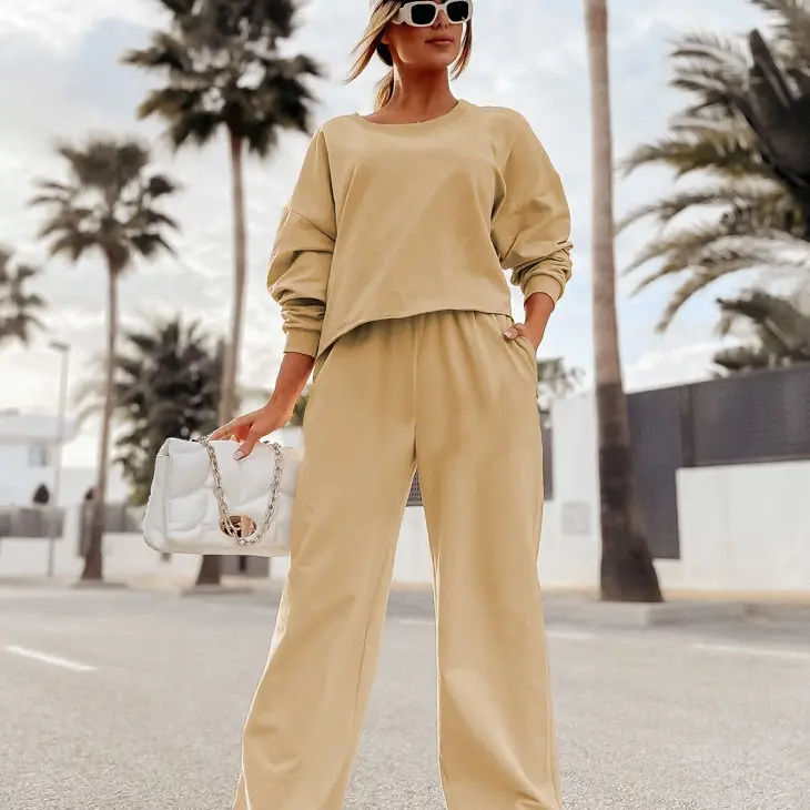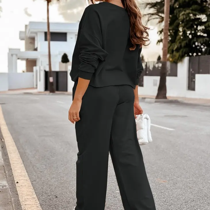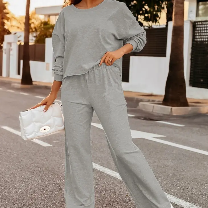 ·Comfortable Design: Long sleeve sweatshirt paired with wide leg pants.