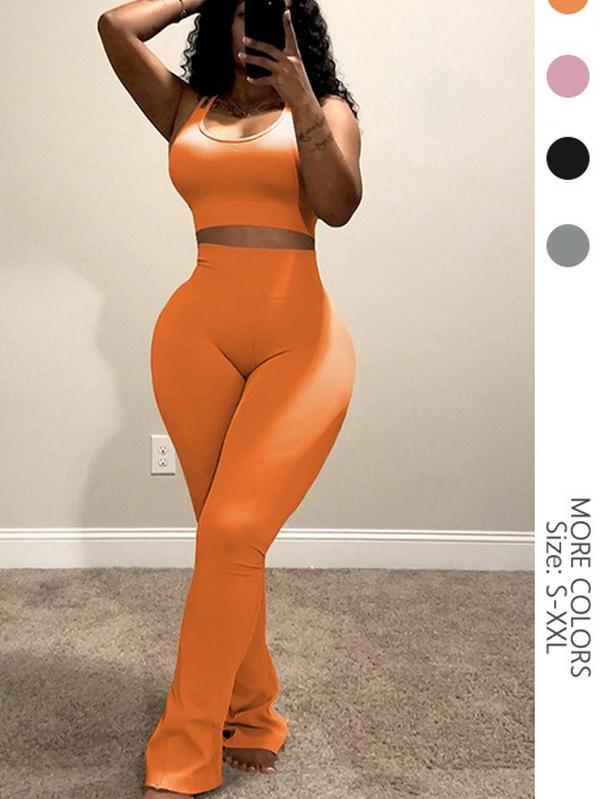 ·Coordinated Set: A perfectly matching cropped top and wide-leg pants for a sophisticated, put-together look.