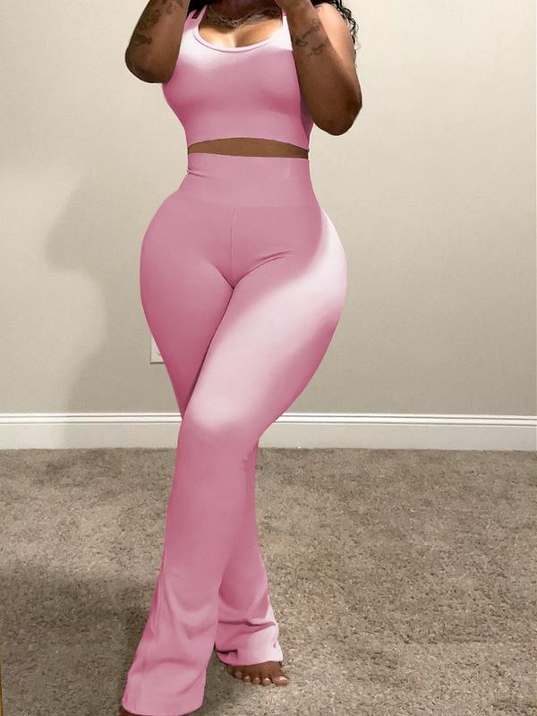 USBoutiqueCHIC Women's Cropped Top & Wide Leg Pants Set