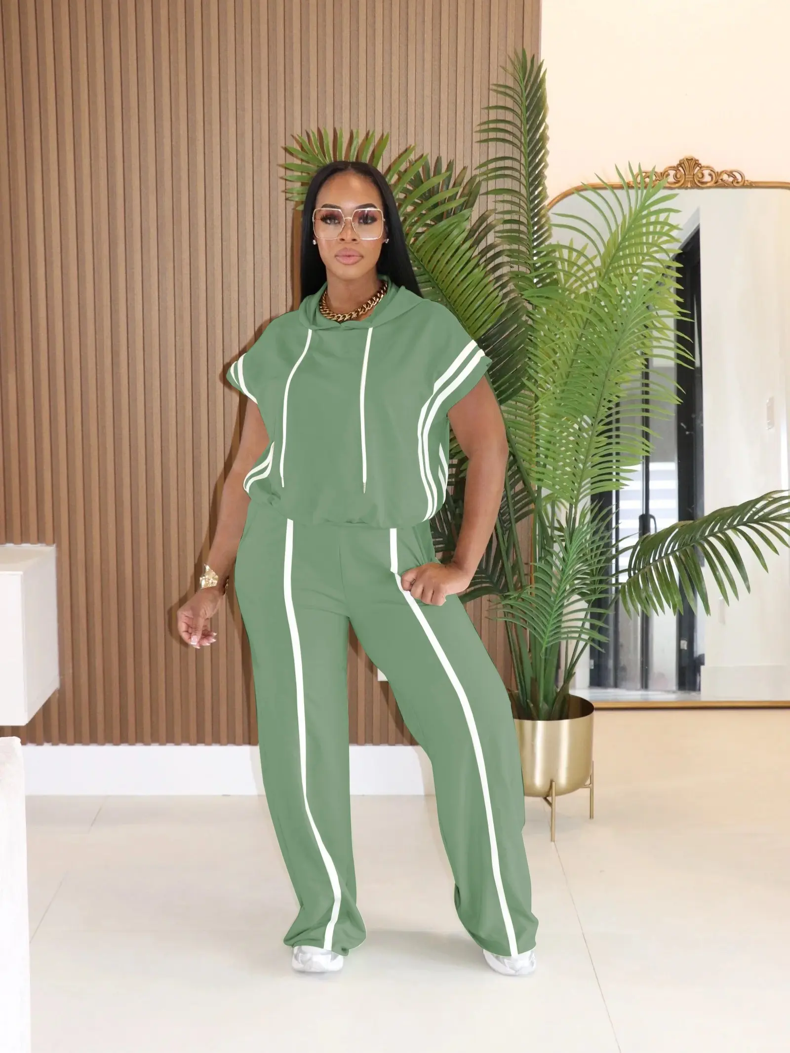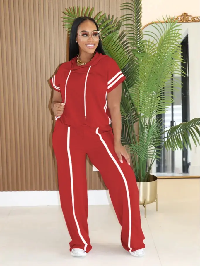 USBoutiqueCHIC Women's Spring Summer Hooded Top & Lounge Pants Set