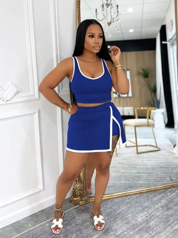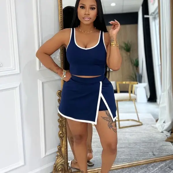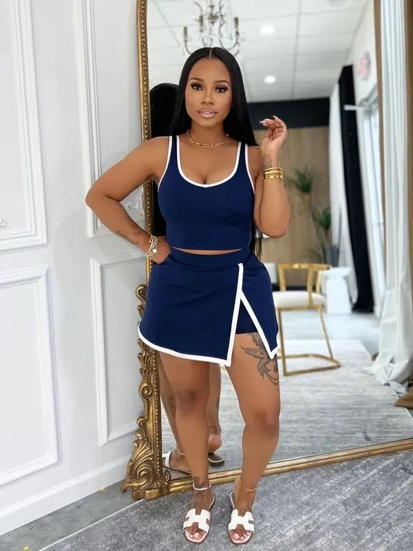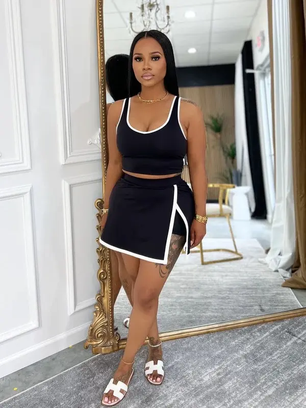 This contrast two-piece set combines "spicy girl vibe" and "ultimate comfort." The cropped tank highlights your waist, while the side-slit skort elongates legs. Perfect for markets, Reels, or parties, expect endless requests for the link! 🌟