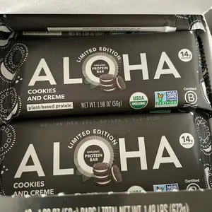 My first aloha purchase was the banana bread flavored bar which are delicious. The cookies and cream are more like a protein bar in texture and flavor.