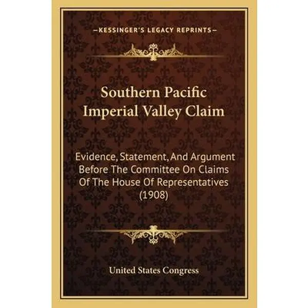 Southern Pacific Imperial Valley Claim: Evidence, Statement, and Argument before the Committee on Claims of the House of Representatives is a historical document that was published in 1908 by the United States Congress. The book contains a detailed account of the Southern Pacific Railroad Company's claim for reimbursement from the federal government for damages incurred during the construction of a railroad line in the Imperial Valley of California.The book is divided into several sections, including an introduction, evidence presented by the Southern Pacific Railroad Company, statements made by witnesses, and arguments presented by both the railroad company and the government. The evidence presented includes maps, photographs, and various documents related to the construction of the railroad line.The Southern Pacific Railroad Company's claim was based on the argument that the construction of the railroad line had caused significant damage to the surrounding land, including the destruction of crops and the diversion of water from the Colorado River. The company argued that the federal government was responsible for these damages, as it had granted the company the right to construct the railroad line through the Imperial Valley.The government, however, argued that the damages were the result of the company's own negligence and mismanagement, and that the company was therefore not entitled to reimbursement. The arguments presented by both sides are detailed in the book, providing a fascinating insight into the legal and political issues surrounding the construction of the Southern Pacific Railroad in the early 20th century.Overall, Southern Pacific Imperial Valley Claim: Evidence, Statement, and Argument before the Committee on Claims of the House of Representatives is an important historical document that sheds light on the complex relationship between the federal government and the railroad industry in the United States.This scarce antiquarian book is a facsimile reprint of the old original and may contain some imperfections such as library marks and notations. Because we believe this work is culturally important, we have made it available as part of our commitment for protecting, preserving, and promoting the world's literature in affordable, high quality, modern editions, that are true to their original work.