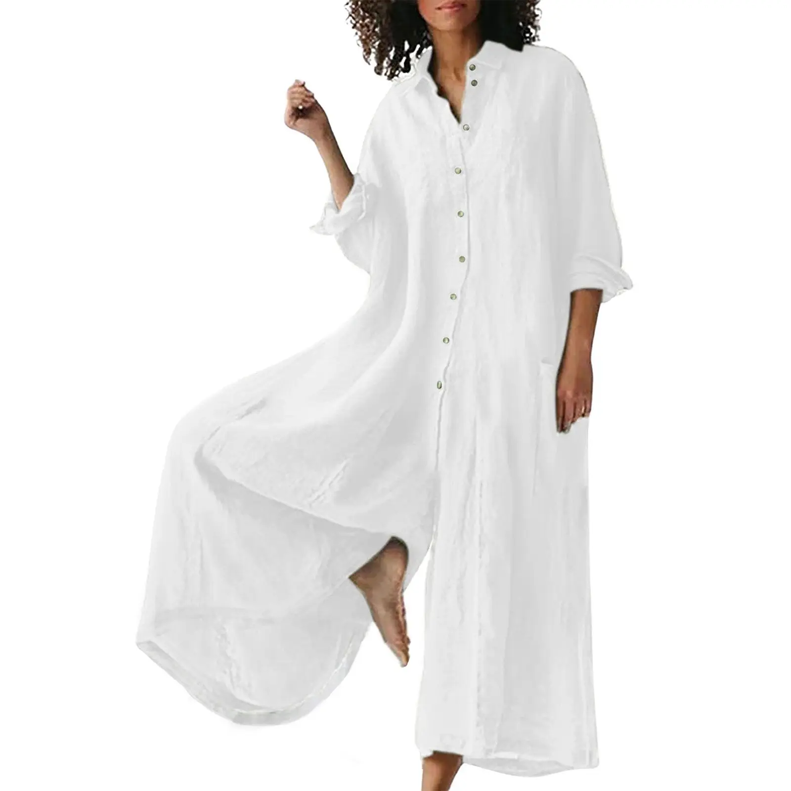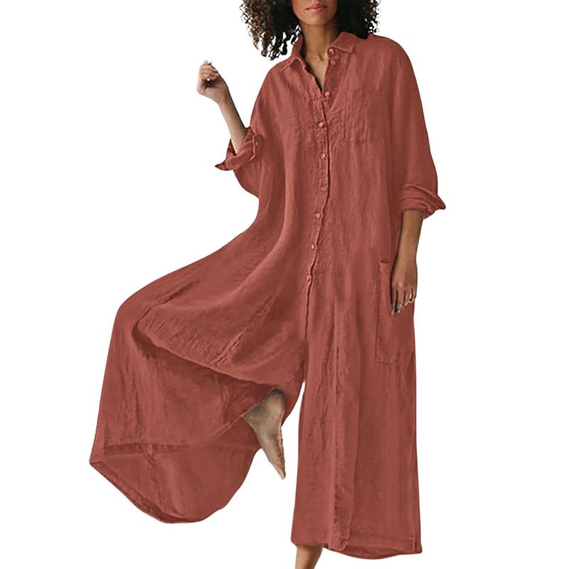 ·Selling Points----Button down shirt jumpsuit, Long sleeves with buttoned cuffs, Wide leg jumpsuit bell bottom flared pants palazzo, Modest solid color- green, dark blue, black, pink, white, khaki