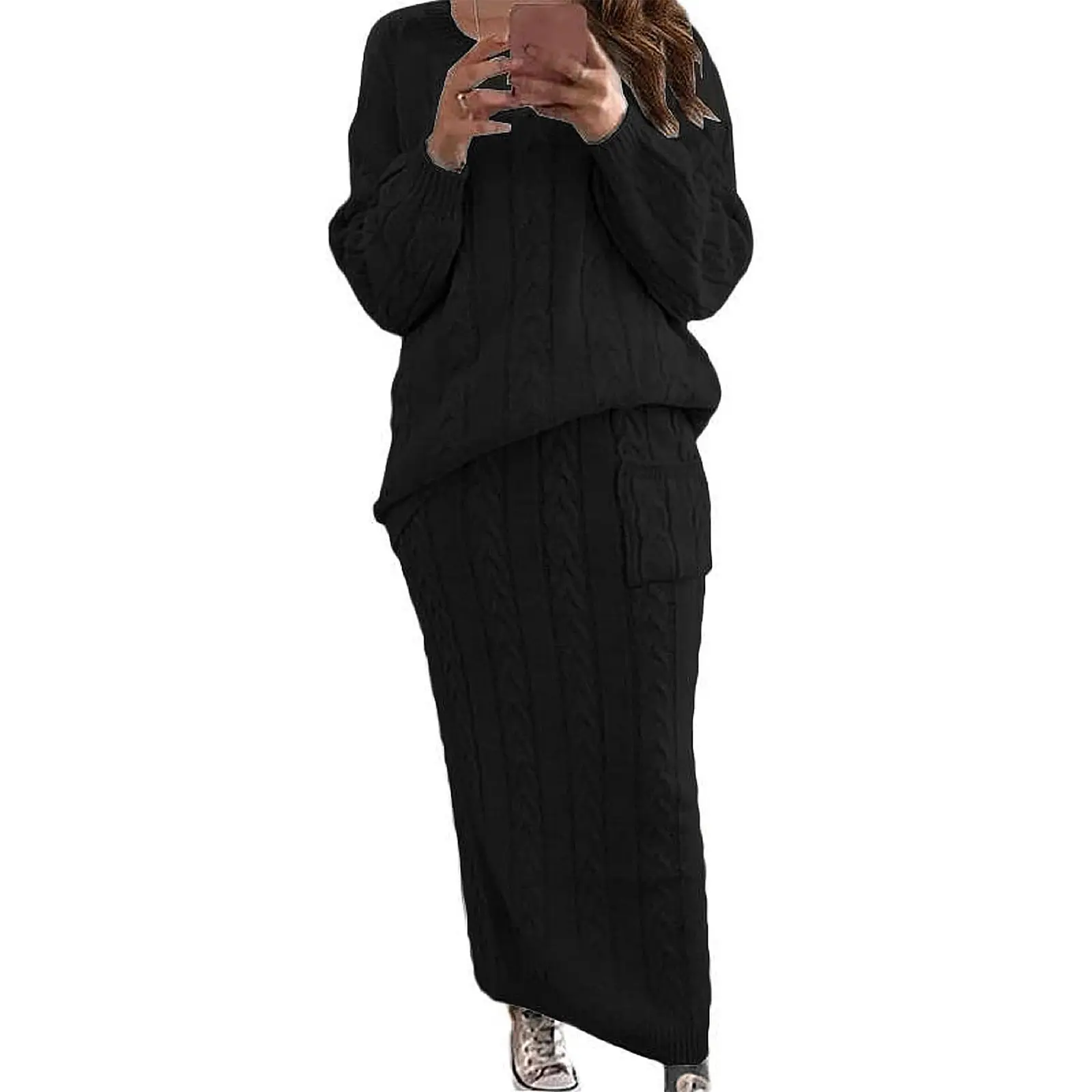 • 🎨 The 2-piece outfit includes a cable knit long sleeve sweater pullover and a mid-length pencil skirt with a pocket. The casual loose fit style and classic solid color make it versatile and timeless.