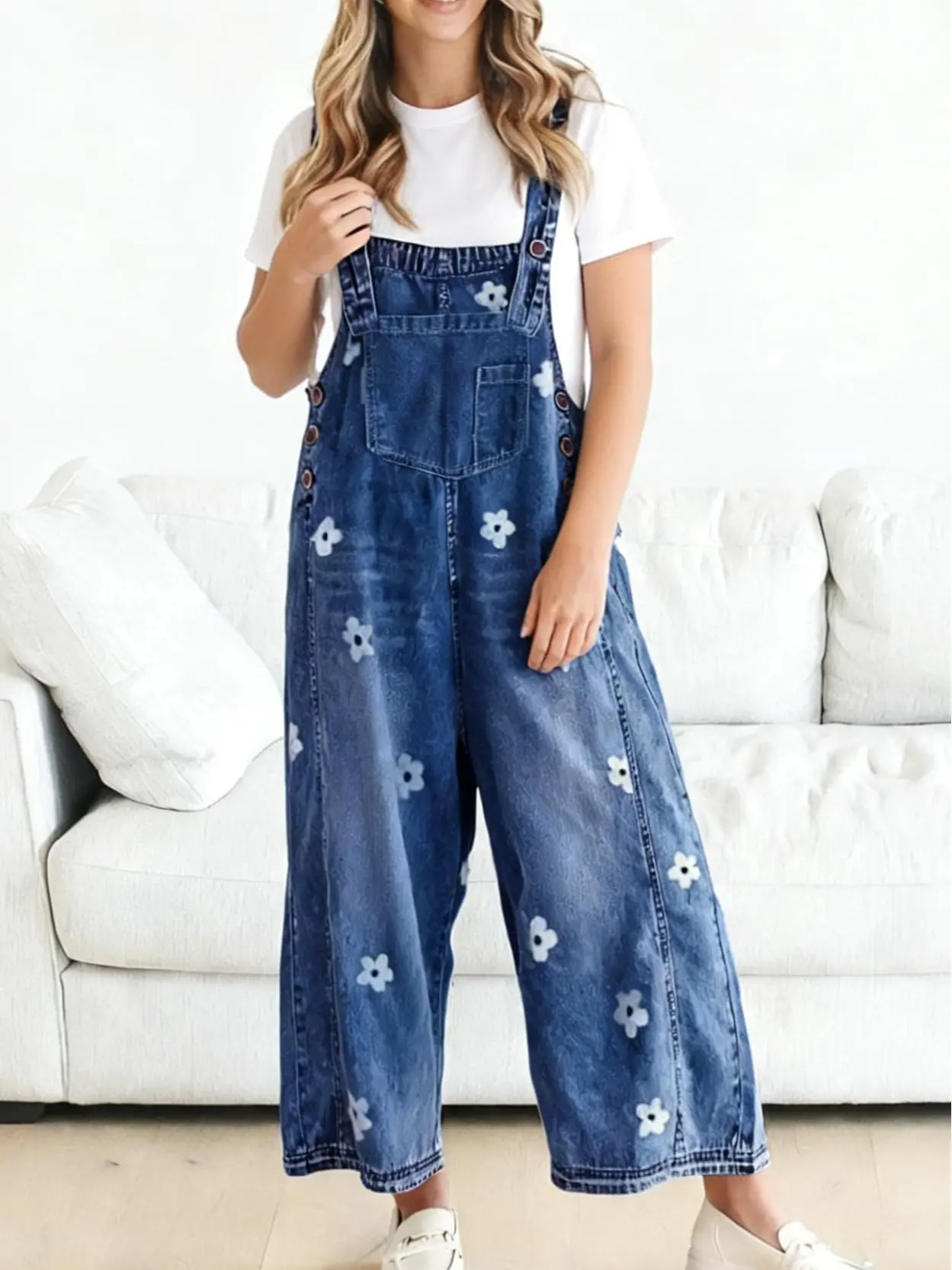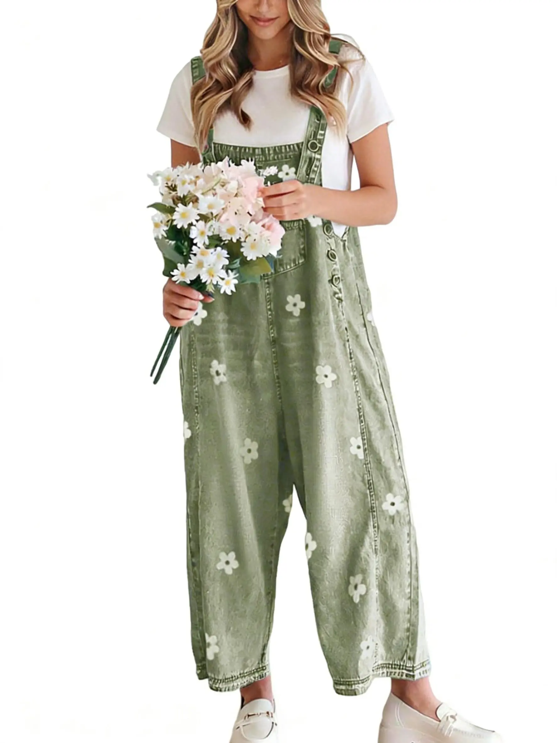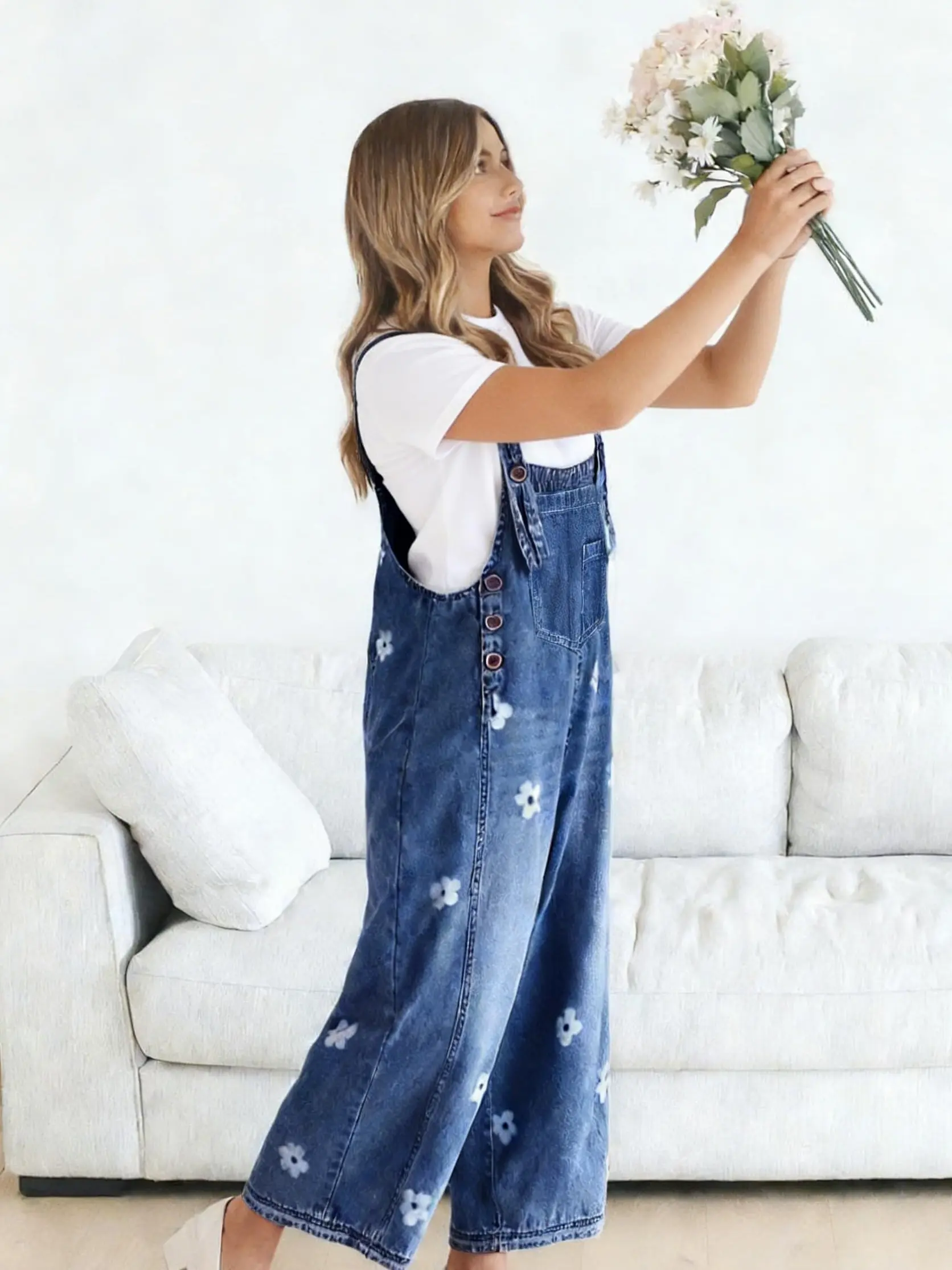 ·【STYLE】loose fit denim overalls for women/ baggy denim bib overall/ wide leg denim pants overalls for women/ adjustable strap denim overall/ vintage flower printed wide leg jeans/ retro street distressed denim overall for women/ sleeveless denim jumper jumpsuit/ denim long romper/ one piece outfits/ work clothes for women/ womens clothing trendy 2025/ womens fashion 2025/ 2025 fashion fall clothes for women