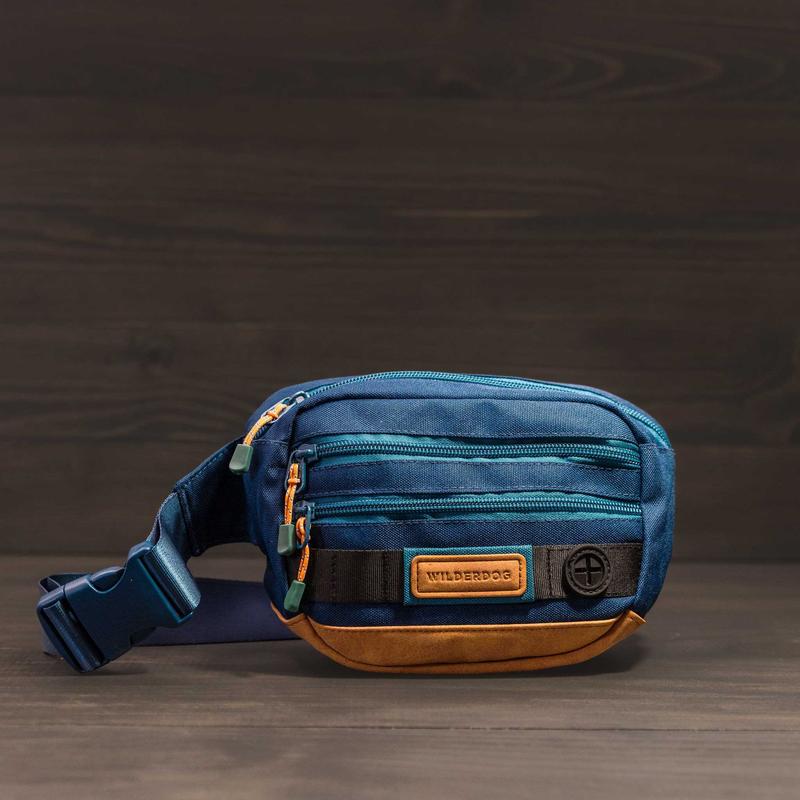 It's the ultimate fanny pack + treat bag combo with three separate compartments. While big enough to fit your phone, wallet, poop bags, and over a cup of treats, the Utility Pack is still small enough to comfortably sit on your waist! The rubber poop bag hole from the front pouch easily dispenses a roll of poop bags, while the black webbing is designed to be able to clip extra gear to the front.