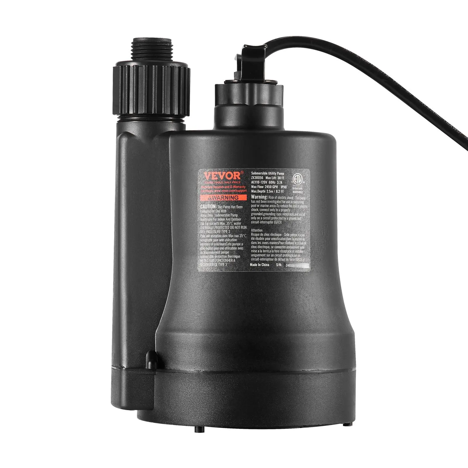 VEVOR Utility Pump, 1/3 HP, 2450 GPH High Flow, 30 ft Head, Sump Pump Submersible Water Pump Portable Utility Pump with 10 ft Long Power Cord for Draining Water from Swimming Pool Garden Pond Basement