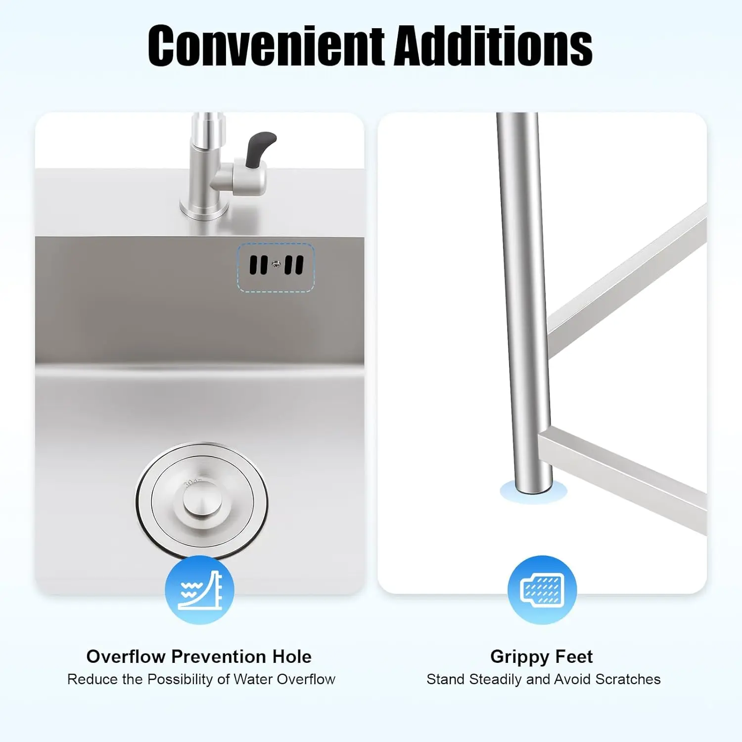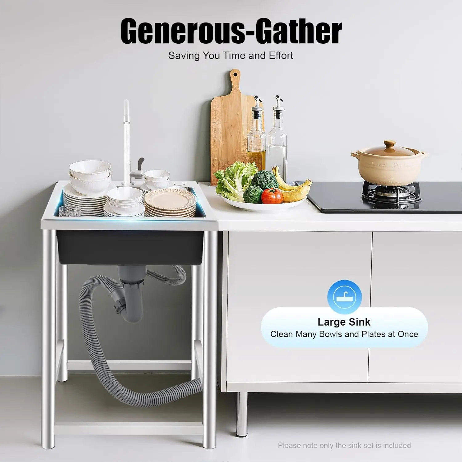 The large sink(17.7*15.75*8.66in) provides you with a spacious space to accommodate more utensils and improve the efficiency of kitchen operations.