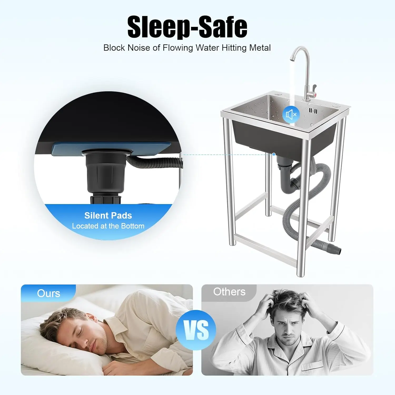 The bottom of the sink is designed with a thick silent pad, which effectively reduces noise and provides you with a comfortable cleaning environment.