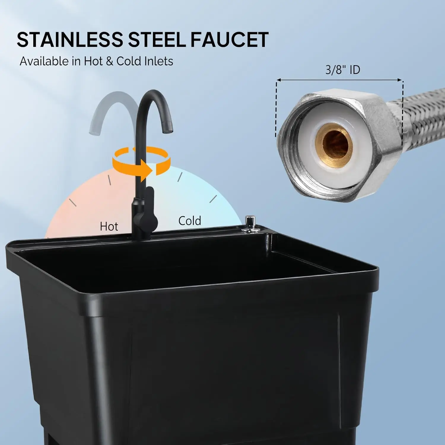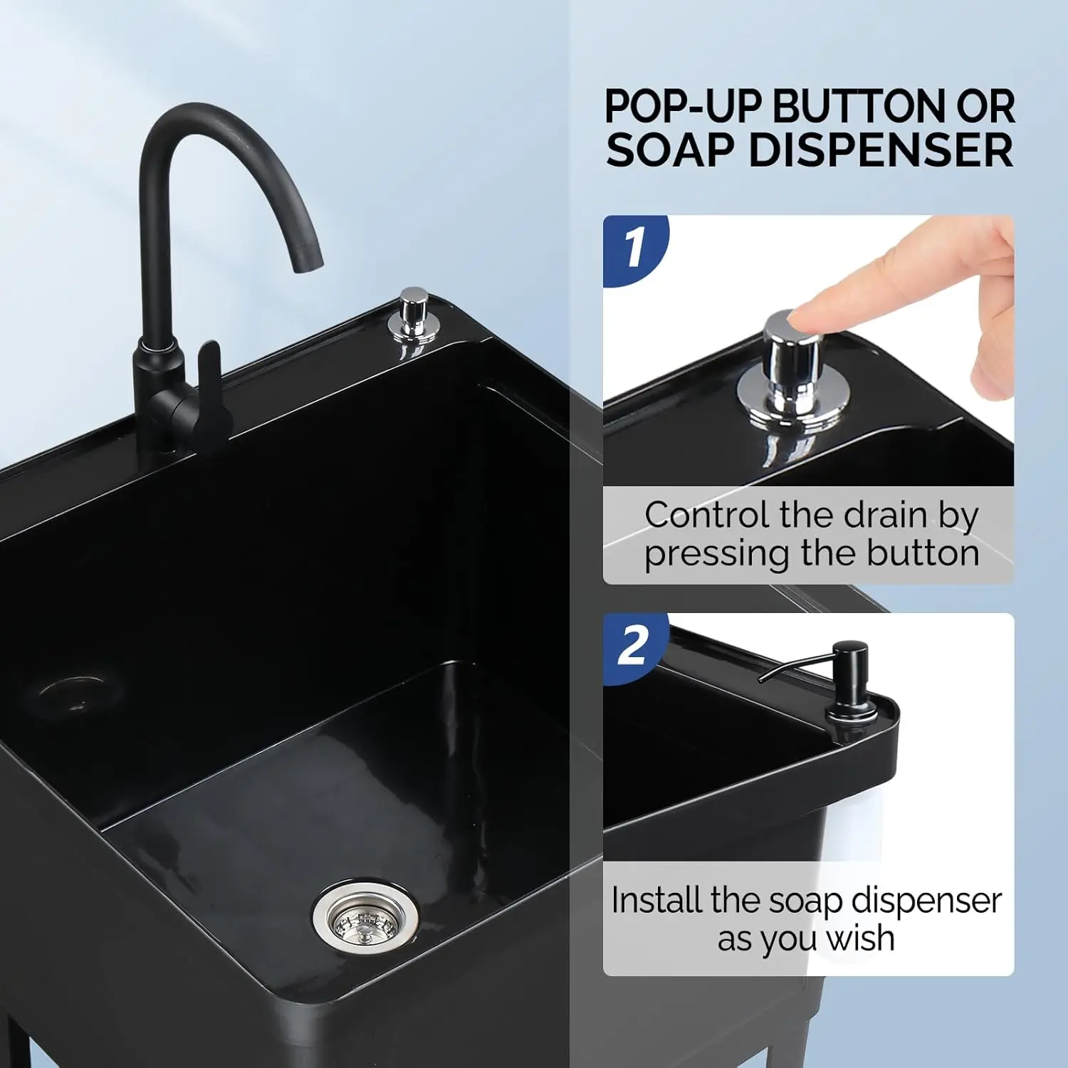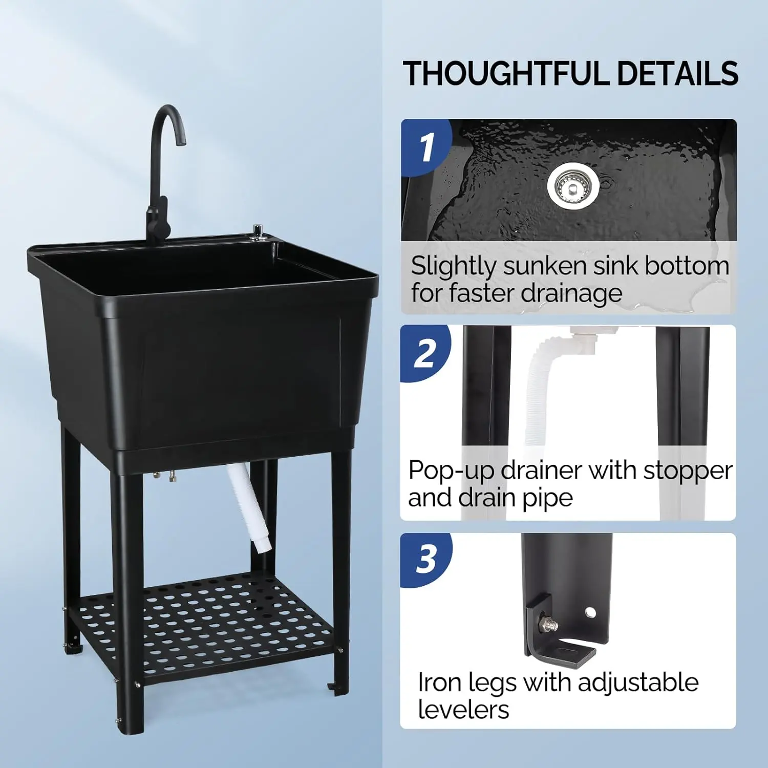 ROVSUN Plastic Utility Sink, Freestanding Sink with Hot&Cold Faucet, Soap Dispenser, Drain Plug and Iron Legs with Storage shelf, Perfect for Basement, Laundry Room, Garage, Black 23.6"×23.6"×36.2" SpringStatementsROVSUN Plastic Utility Sink, Freestanding Sink with Hot&Cold Faucet, Soap Dispenser, Drain Plug and Iron Legs with Storage shelf, Perfect for Basement, Laundry Room, Garage, Black 23.6"×23.6"×36.2" SpringStatements