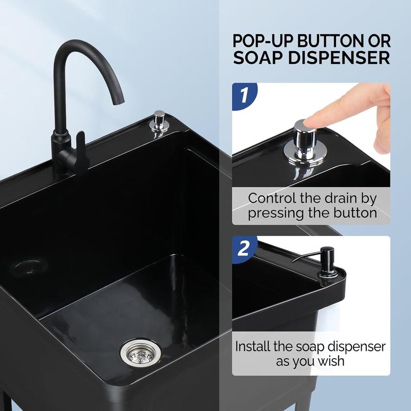 🖤 Sleek + strong—23.6" freestanding sink with storage space keeps your workspace clean. #UtilitySinkWithShelf #LaundryGarageSetup #HomeEssentials #SpaceSaver#lun97pr
