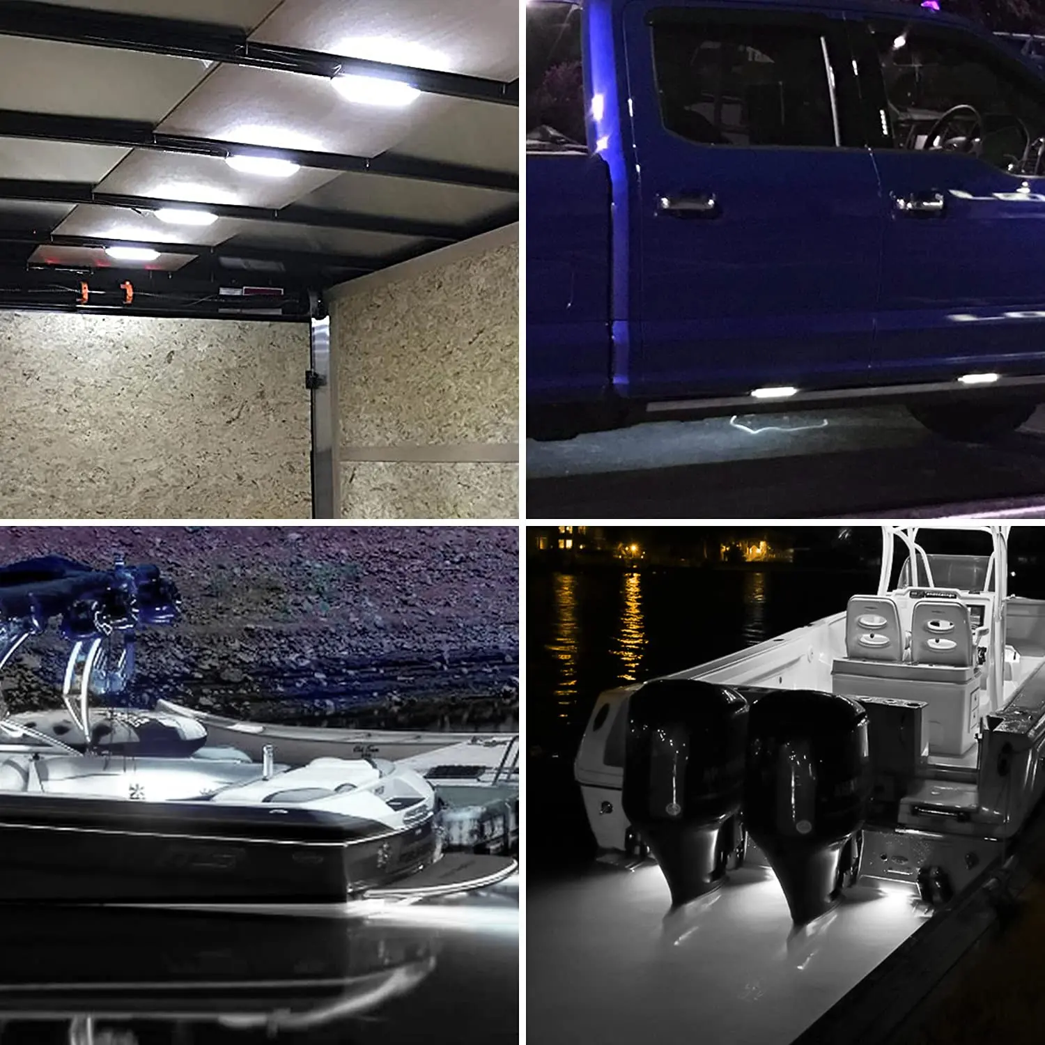 Partsam white led lights function as utv interior light, truck under hood lights, boat deck courtesy lights, pontoon led lights, engine room lighting, boat interior lights, trucks utility shell lights, camper shell lights, under rear liftgate light bar, ceiling light, marker lights, clearance lights, runnling lights, side marker lights, indicator lights, step lights, trailer lights, stair lights, truck lamps and so on; Truly many customers use them as boat marine lights, very bright;