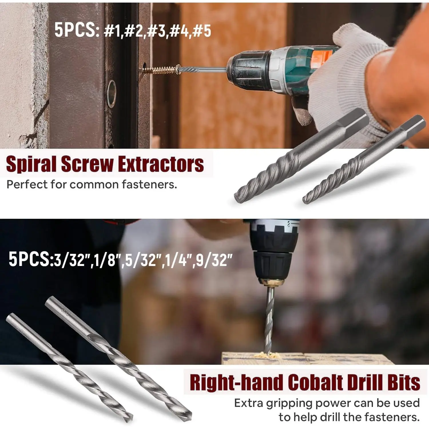 STRONG & DURABLE: Bolt & screw extractor set is made of high strengthened and durable chrome molybdenum steel, which ensures it is tough enough to easily remove those damaged screws and make your work more efficient