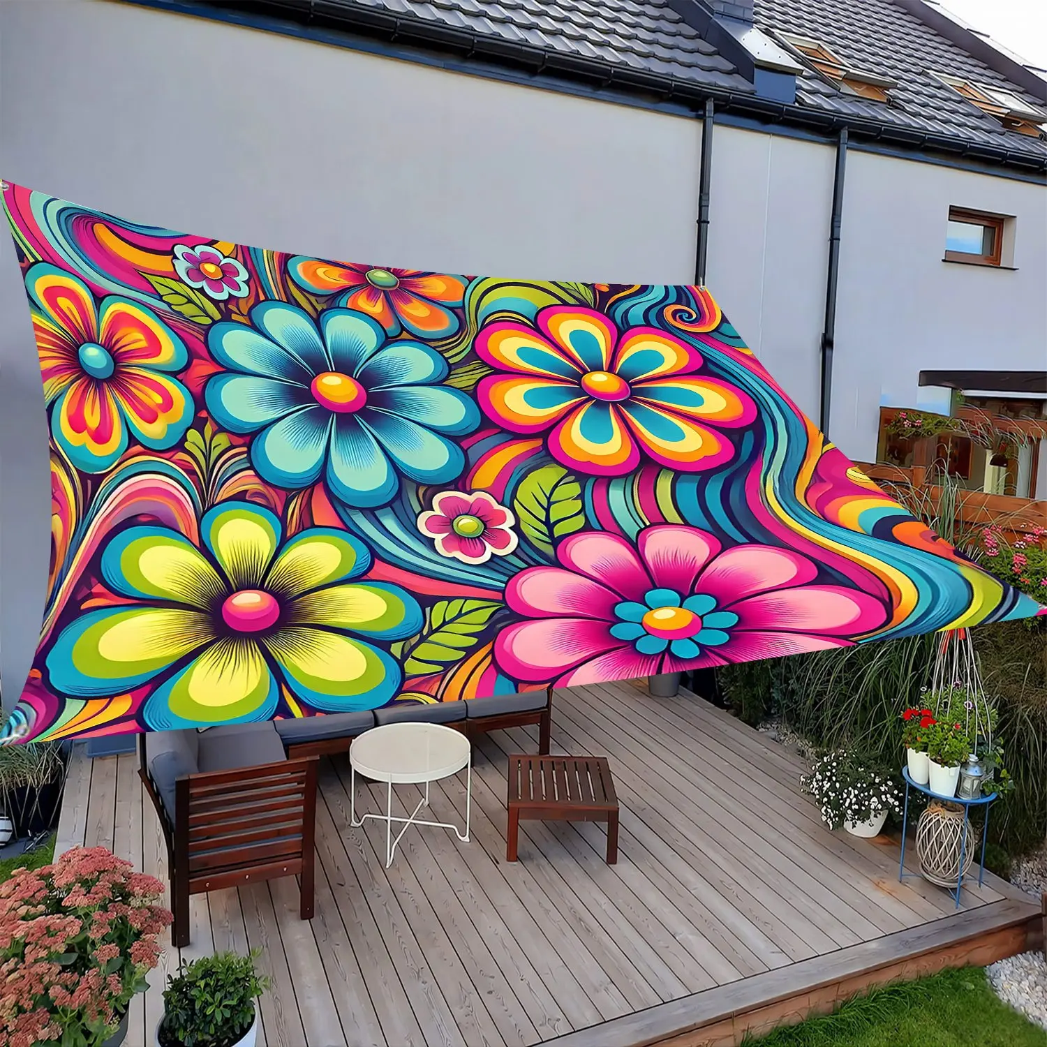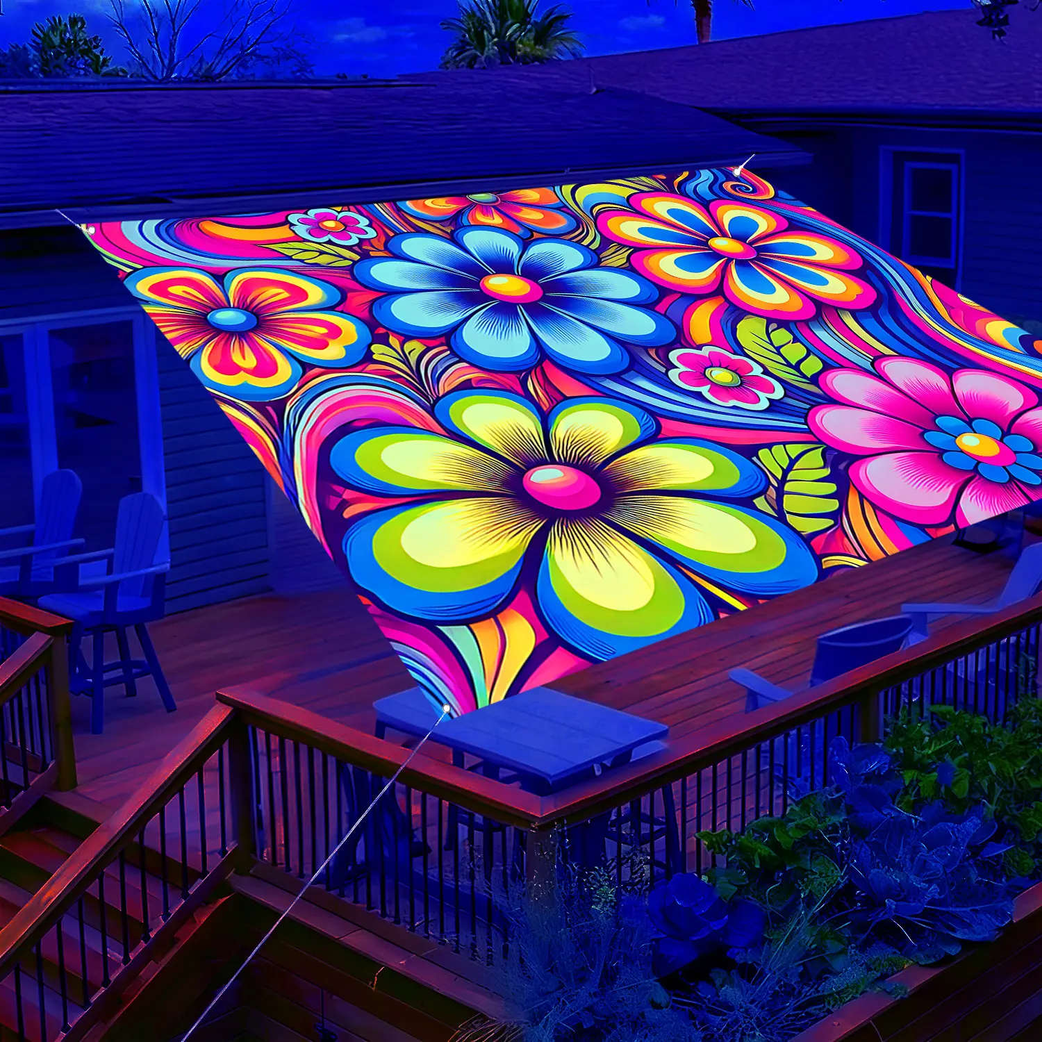 1Pcs UV Glowing Flower Canopy - Lightweight Polyester Sunshade, Suitable for Beach, Camping, Garden, and Picnic - Outdoor Sunshade, Ideal for Adventure (Support Poles Not Included)