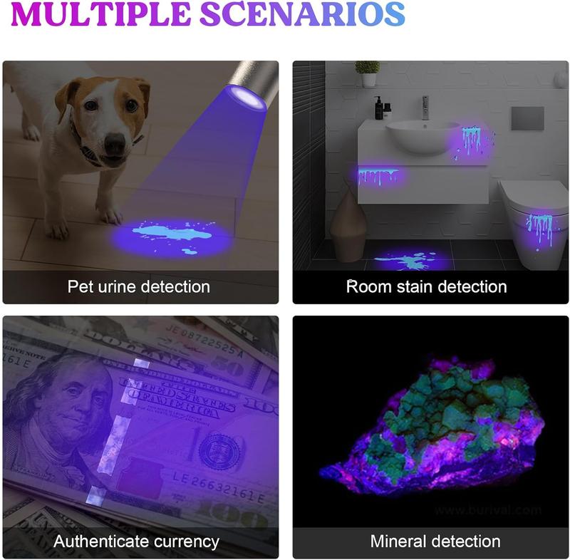 ·Detect the Unseen: Beyond resin curing, our UV lamp reveals hidden stains on carpets, clothes, and pet urine. Use it to uncover invisible room stains and for outdoor adventures like camping, mineral identification, and verifying currency and official documents.