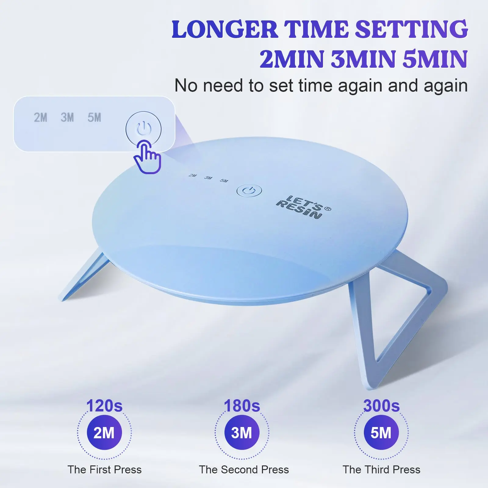 ·Extended Time Setting -2, 3, 5 min Adjustable: Tired of constantly adjusting your UV lamp's short timer? To alleviate your concerns, we've extended the timer settings on our UV resin light to 2,3 and 5 minutes. Say goodbye to repeated timer settings and enjoy the flexibility with LET'S Resin UV light pro.