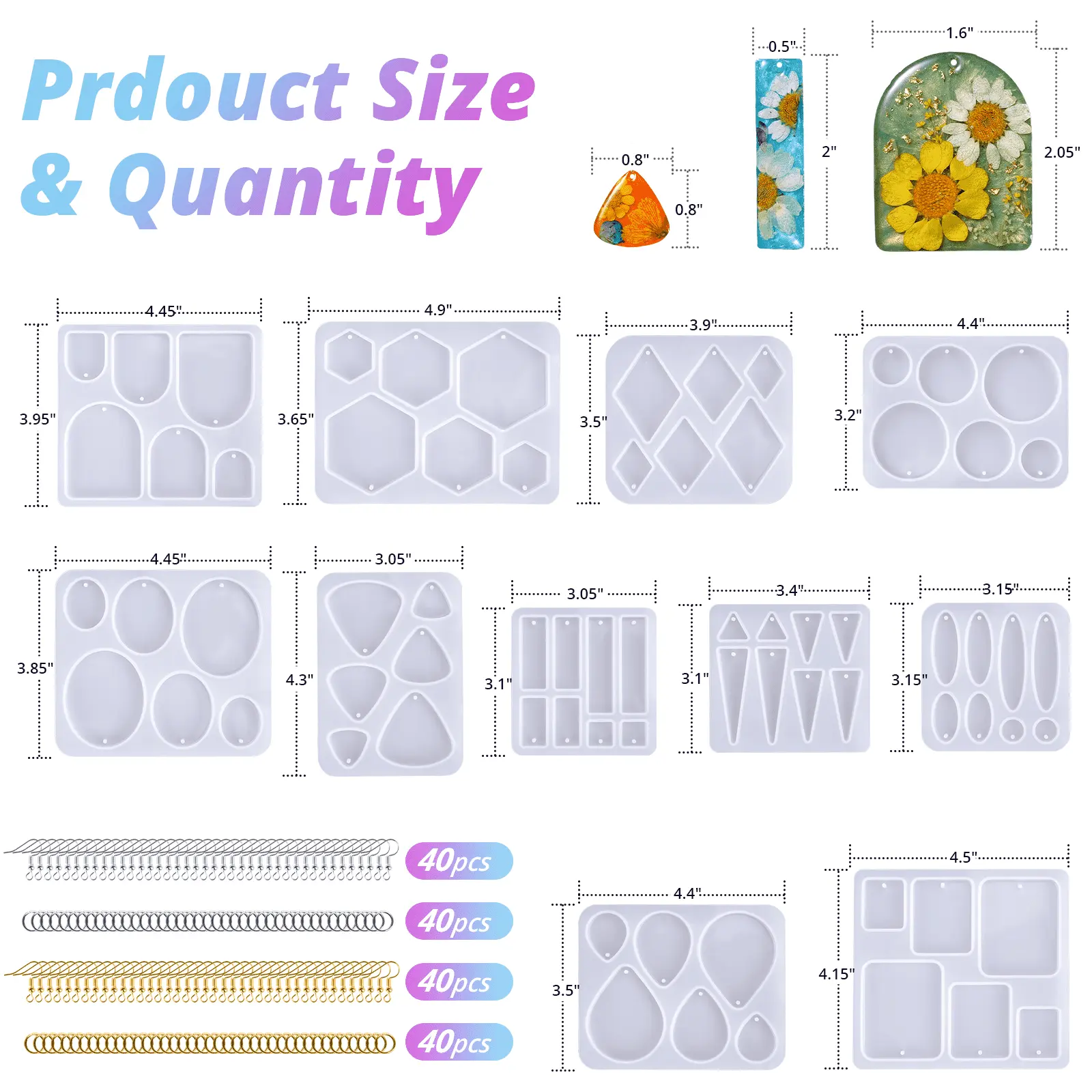 ·171 Count RESIN EARRING KIT - This kit comes with everything you need to make your own dope resin earrings, there are 11epoxy resin molds and 160 metal pieces, including 80 gold and silver jump rings and 80 earring hooks. With all these sets, you can make up to 80 pairs of earrings with all sorts of cool designs pendants.