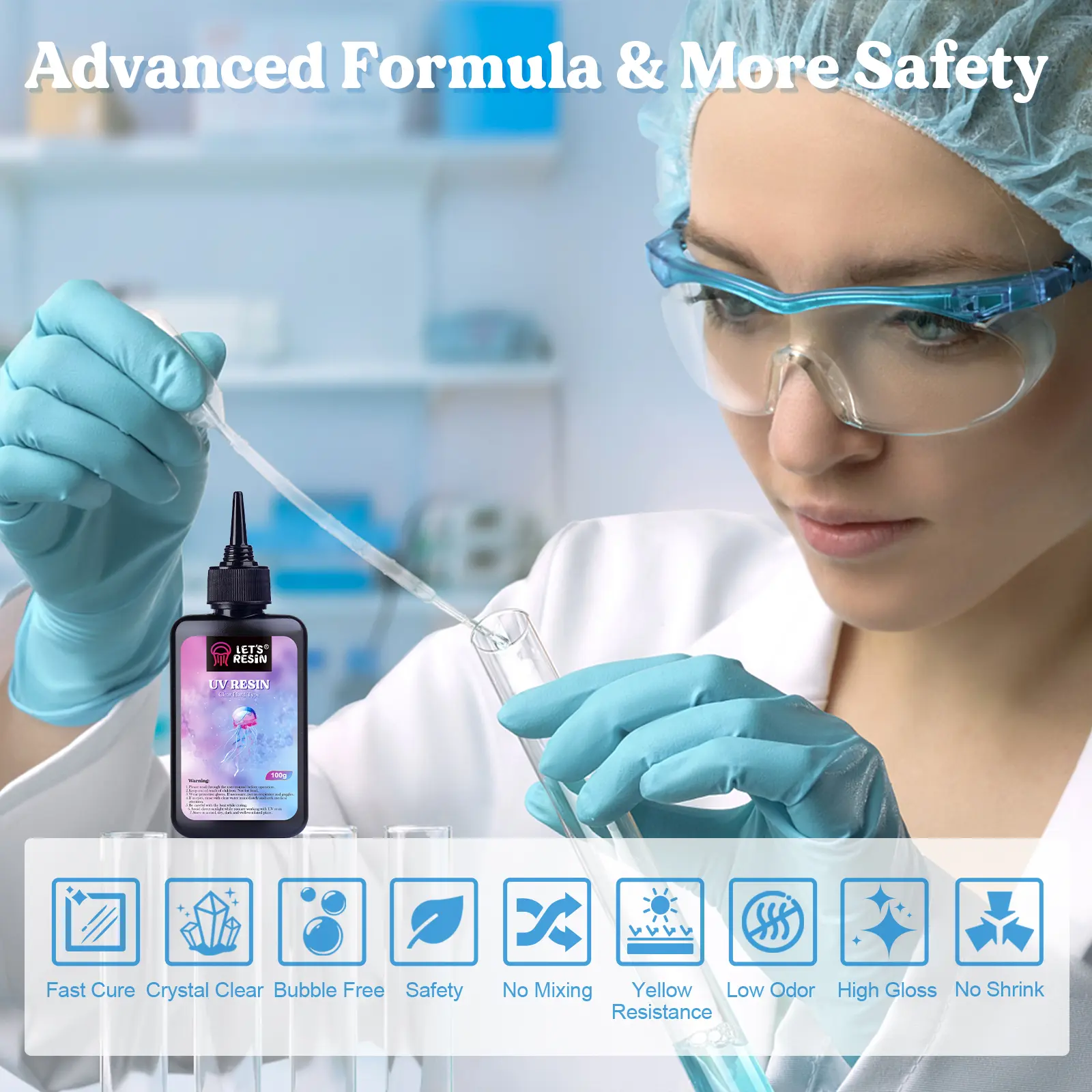 ·Low Odor&Hardness: LET'S RESIN upgrade UV resin is developed and produced safely, using high-quality materials, after long testing and improvement. The reactive diluent is added to reduce volatile components, minimize odor, and allow you to use it more confidently. The UV resin has a shrinkage rate below 2% and cured resins up to 85D with excellent hardness, durability, and scratch resistance. This UV resin kit is perfect for making beautiful necklaces, earrings, pendants.