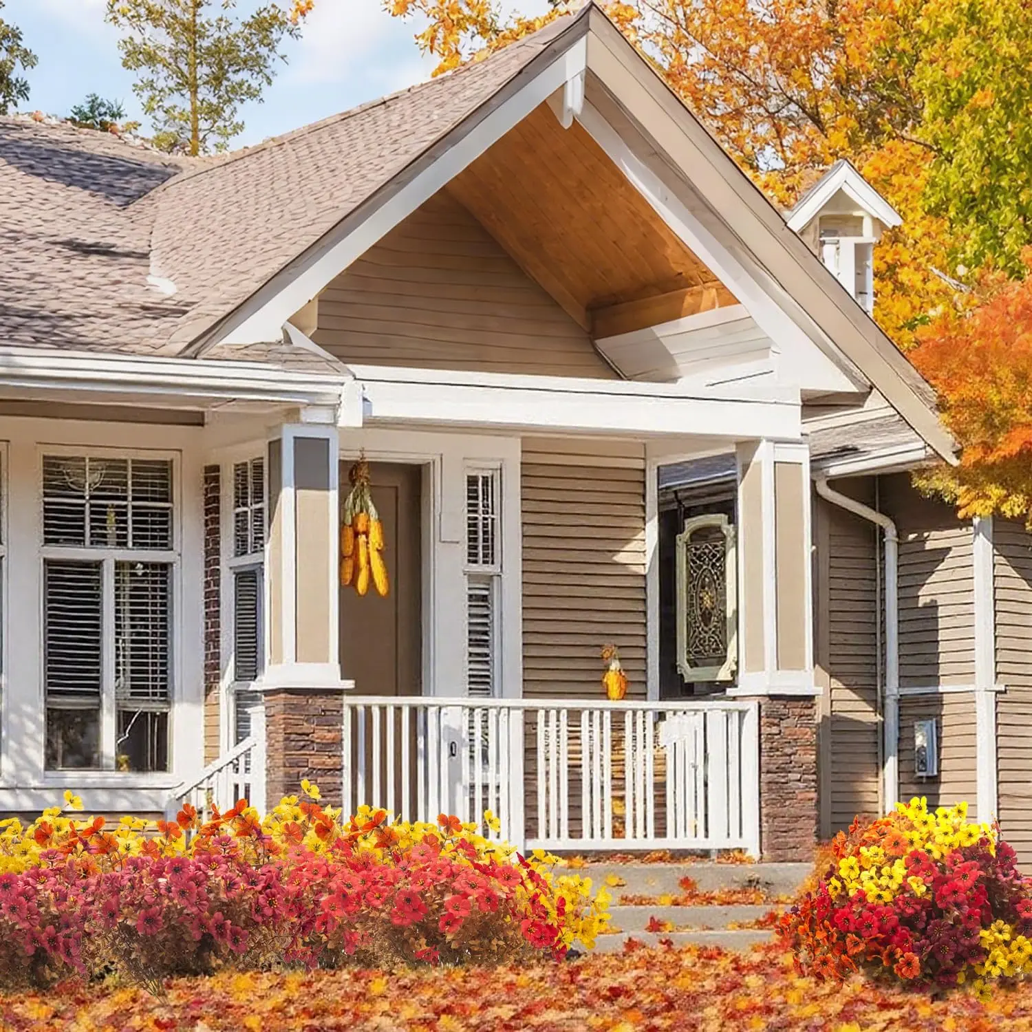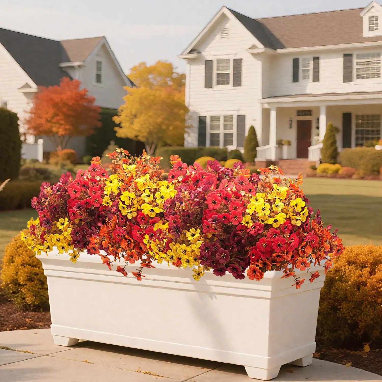 The fall flowers look so good on my porch. Love artificial flowers so they don’t wilt and you have to replace them . The colors are vibrant and real looking.