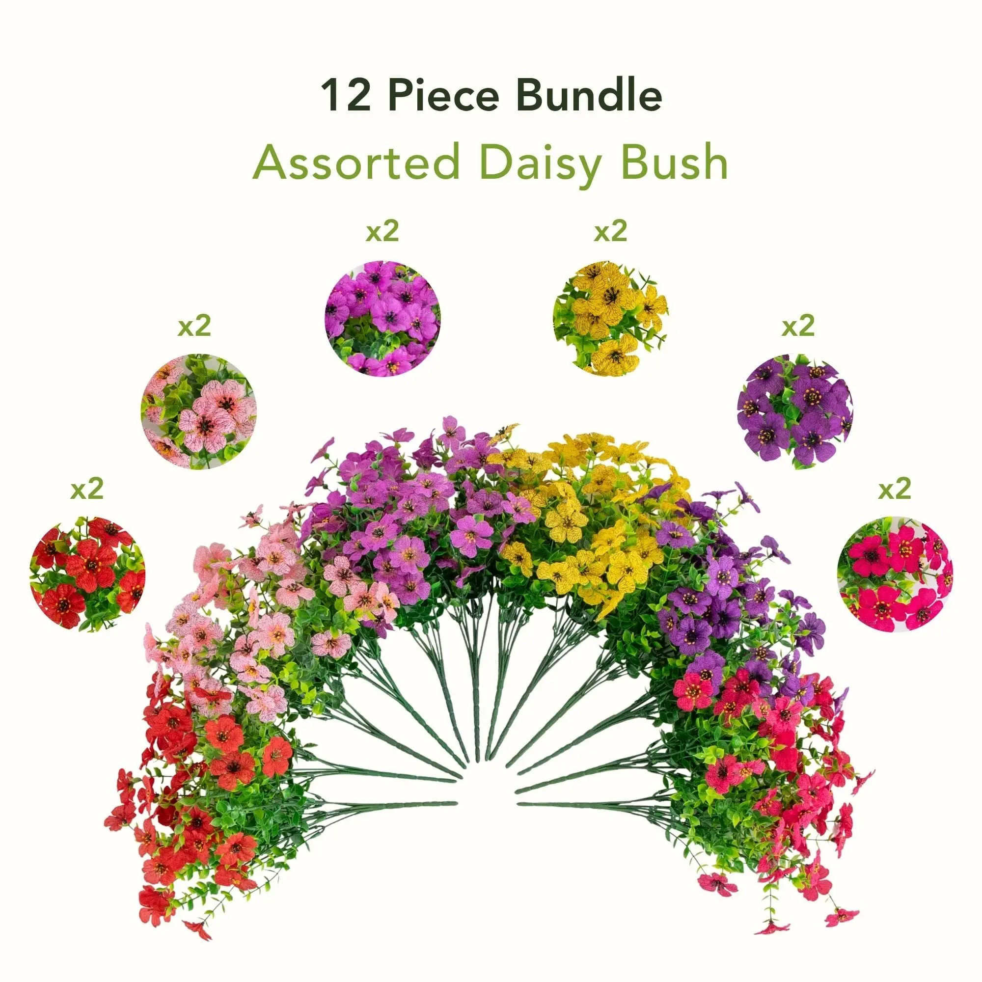 5. 13” UV Resistant Artificial Daisy Bush (Indoor/Outdoor) - Set of 12