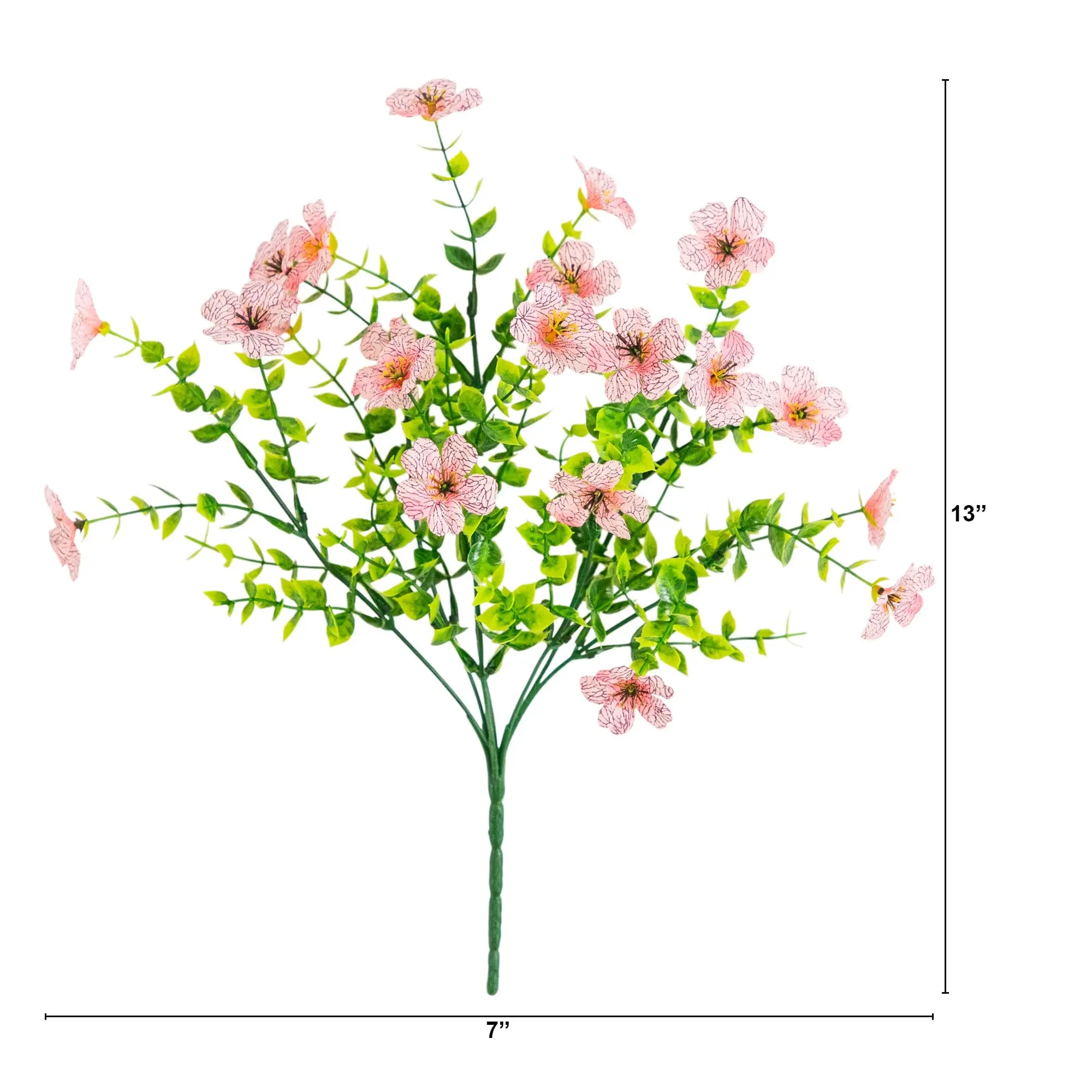 Bring cheerful, lasting color to your home or garden with this 13-In UV resistant artificial flowering daisy bush set. Each lifelike stem showcases vibrant petals with sunny yellow centers, capturing the charm of fresh blooms in every detail. Designed for both indoor and outdoor spaces, these versatile faux florals are flexible, customizable, and effortless to style in planters, window boxes, or seasonal arrangements. With a set of 12 stems, you can instantly create a full, lush display with no watering or upkeep required. Enjoy the beauty of daisies year-round, rain or shine. Brighten your front porch or patio by tucking them into planters, layering them in baskets, or mixing them with greenery for a welcoming look and instant curb appeal.
