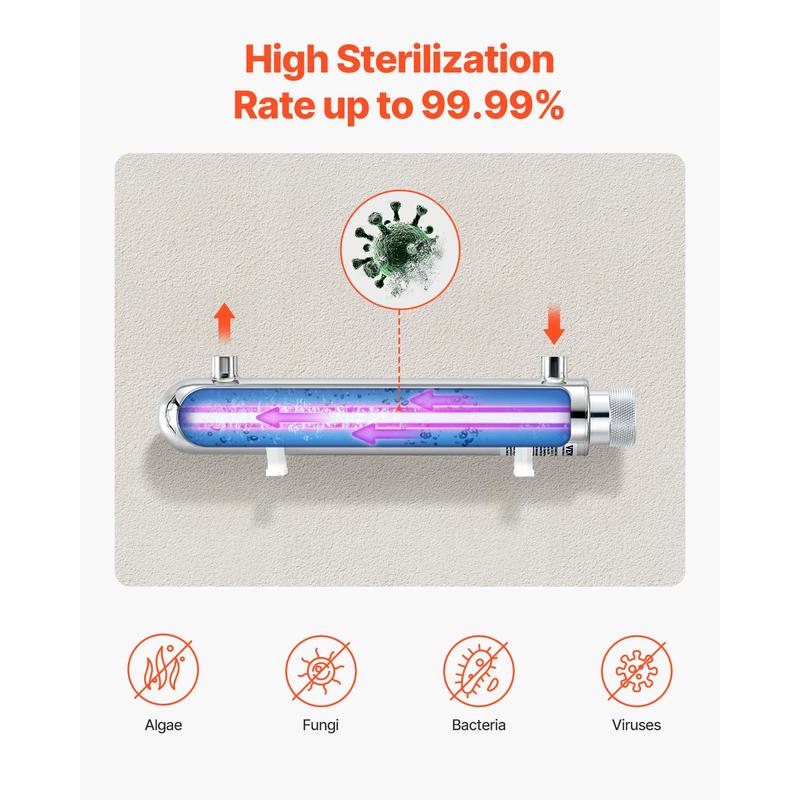 ·Efficient UV Purification: The stainless steel chamber enhances ultraviolet reflection efficiency, achieving a sterilization rate of up to 99.99%. With a UV lamp lifespan of 8,000 hours and a high-stability electronic ballast, it consistently provides pure water for your entire household.