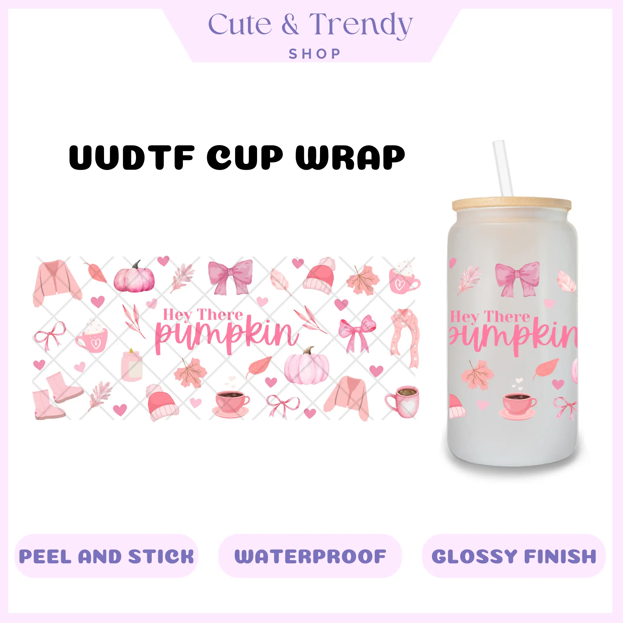 HEY THERE PUMPKIN FALL UVDTF Wrap for 16oz Cups