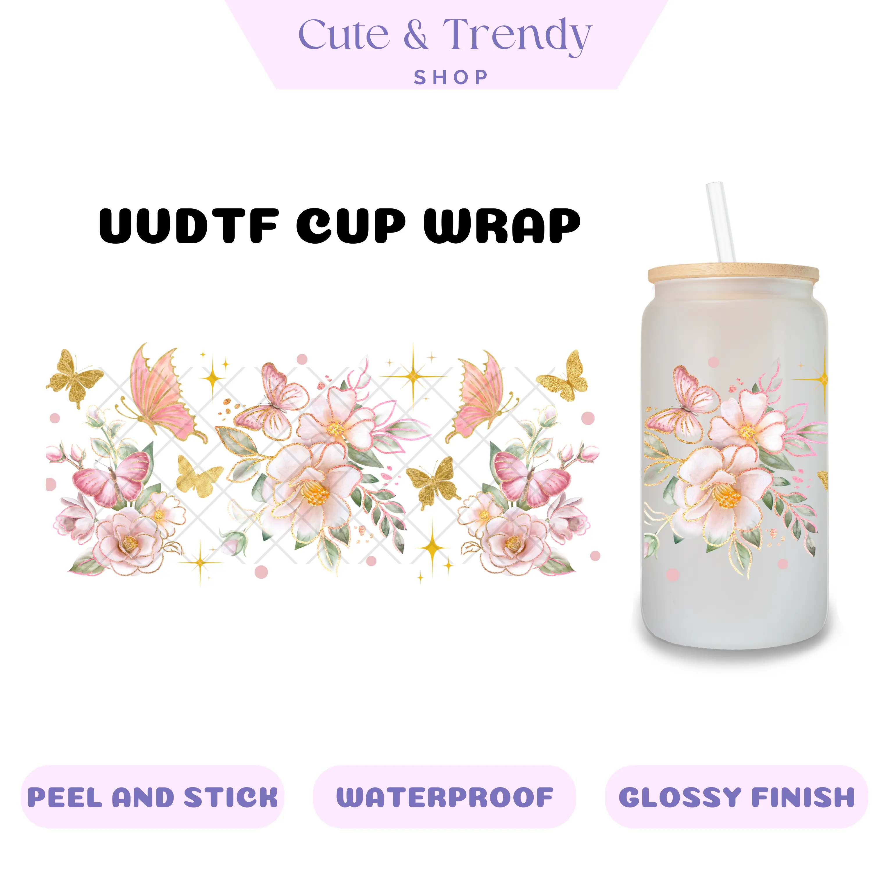Enhance your personalized cups with the easy-to-apply UVDTF cup wrap/decal - the perfect way to make them stand out.