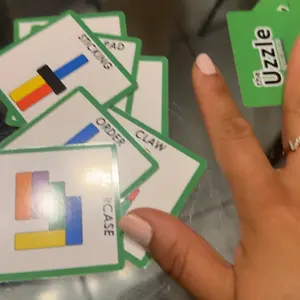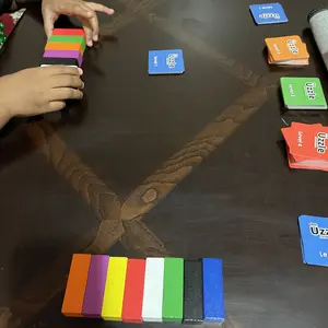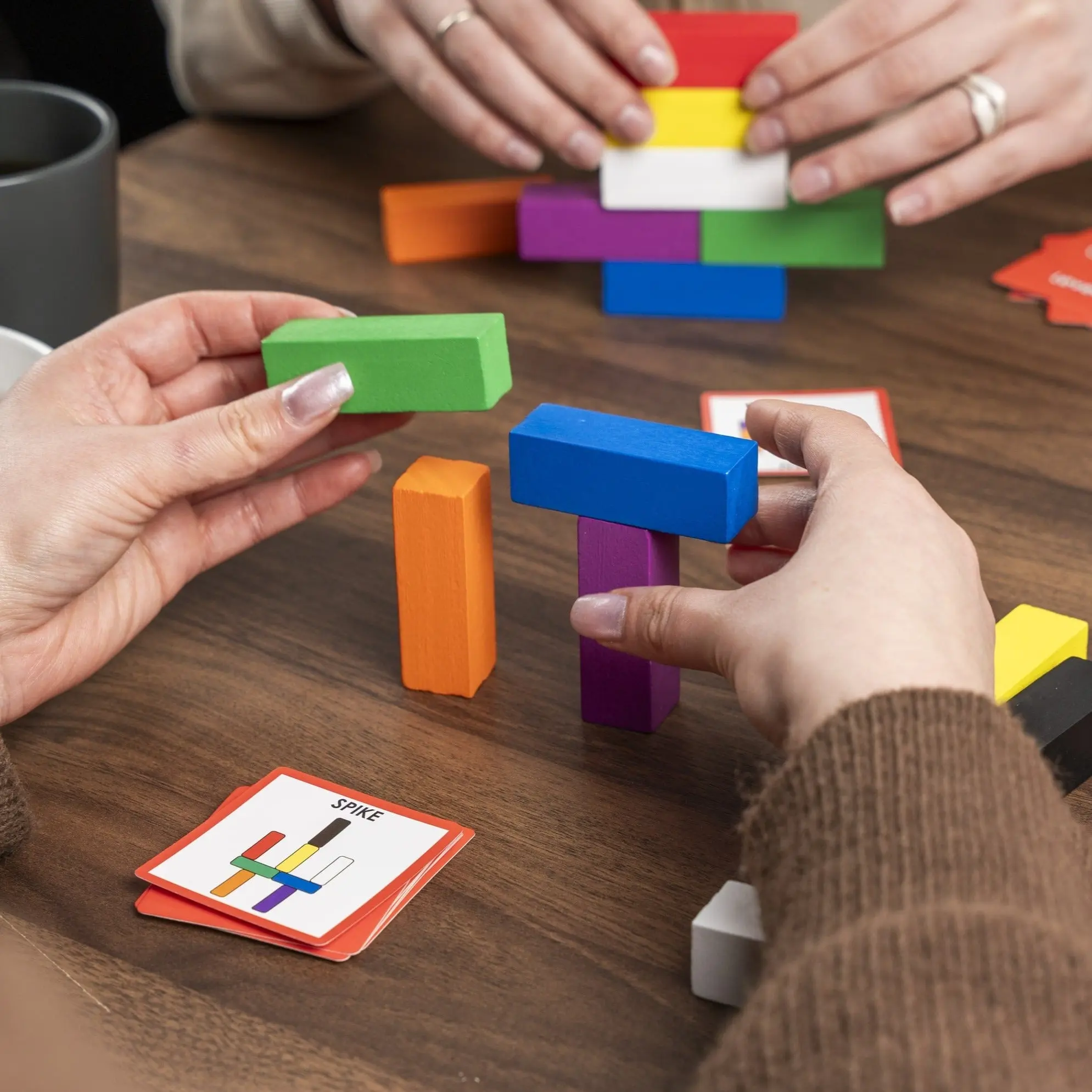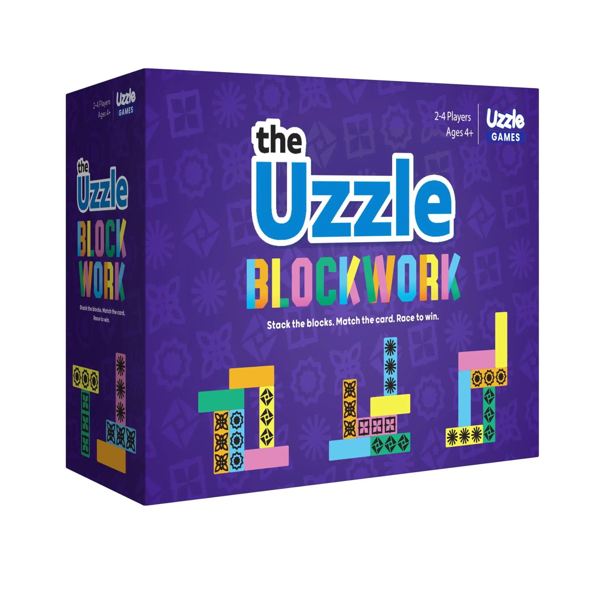 Players race to build the structure on the card by using their set of 8 colored blocks to match the colors and arrangement of the structure. Sharp eyes, fast hands, and quick minds prevail in this fun-filled structure building frenzy!