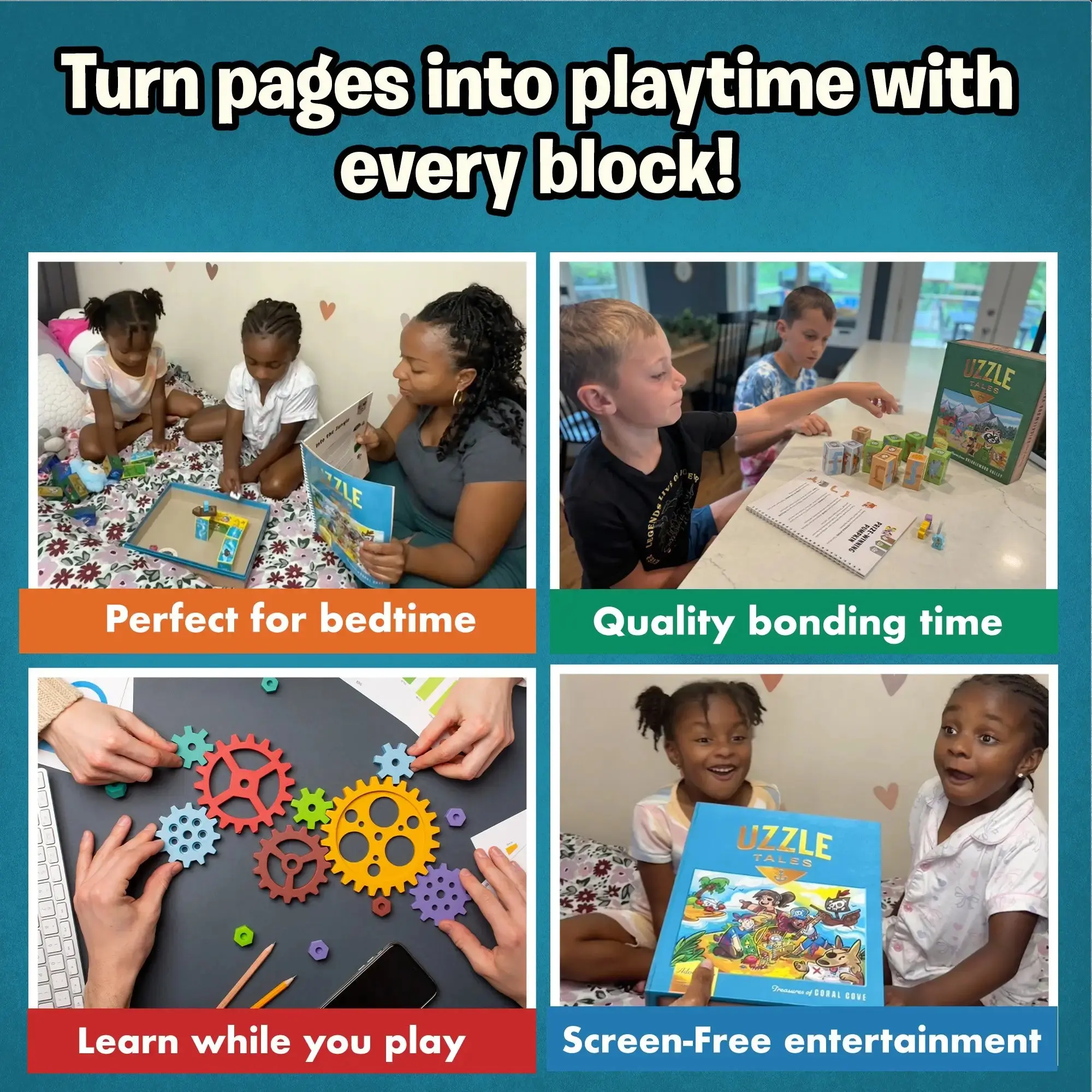 The Story Game That Comes to Life, Block by Block. With Uzzle Tales, your child doesn’t just listen to a story, they build it. Each paragraph leads to a new puzzle piece, placed using clues, direction, and imagery. It’s interactive, screen-free, and packed with discovery.
