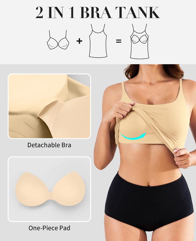 ·V Neck Camisole for Women with Built in Bra: bra and vest two-in-one, no underwear, easy and no restraint. The chest pad can be freely removed for easy cleaning. This is a low basic support Camisole