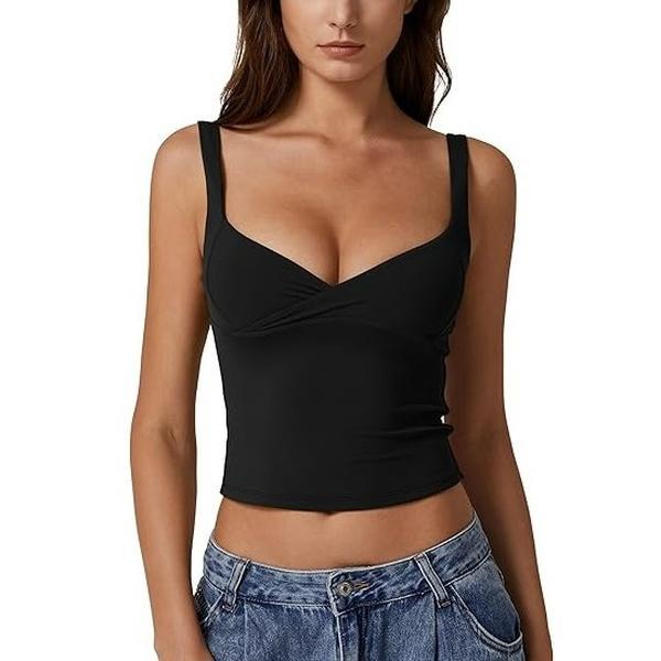 QINSEN Women's Sexy V Neck Tank Tops Double Lined Adjustable Strap Camisole Shirt