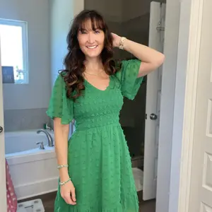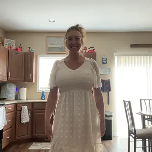 Absolutely love this dress!!!! Beautiful color. Comfortable on a hot summer day.
