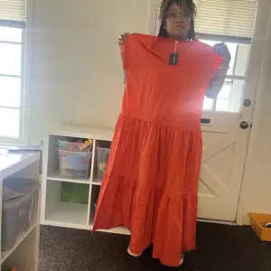 It’s an absolutely stunning color, I usually wear a M & ordered a small & it was still too big I added a belt to elevate the look but it still felt short and it’s all the way to the floor. So if you are short like me you’ll need 👠