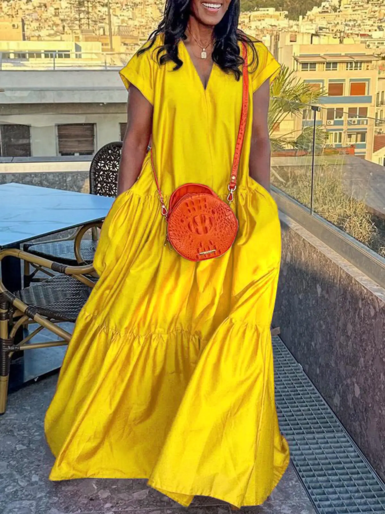 Maxi Dress – V - Neck + Tiered Skirt = SUMMER VIBES 🍊#oddlysatisfying #ootd #uoozee #womenoutfits #fashion #mothersday #jumpsuit #fyp