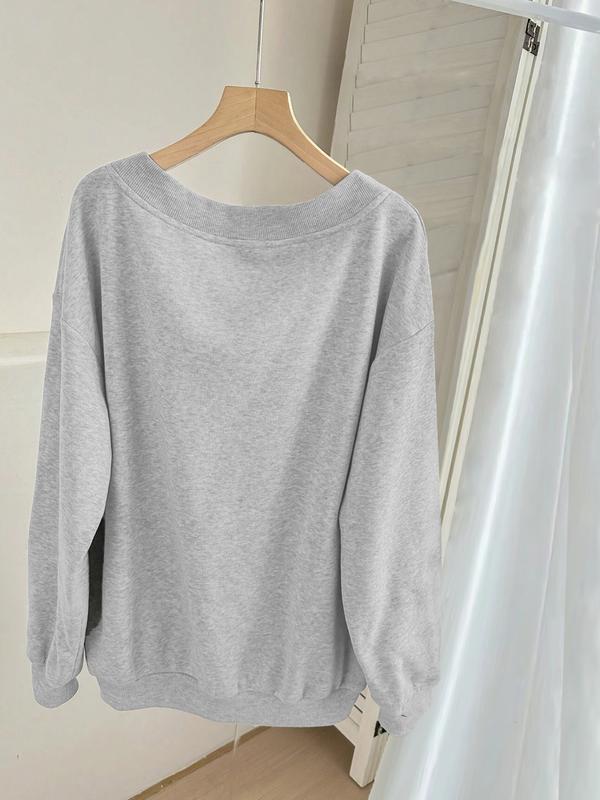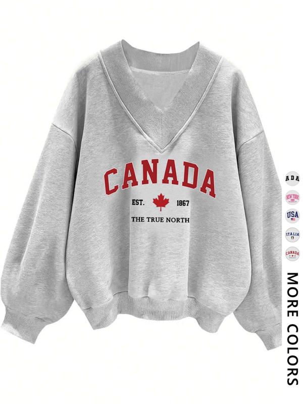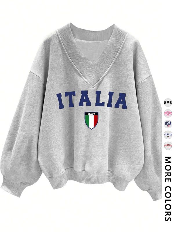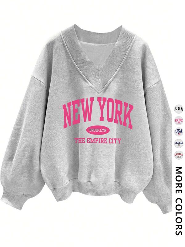 5. Women's Letter Print V Neck Pullover Sweatshirt, Casual Long Sleeve Sweatshirt for Daily Wear, Ladies Clothes for All Seasons