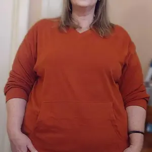 Features: Flattering V-neck design, Convenient kangaroo pocket for daily essentials, Soft, lightweight, and breathable fabric keeps you comfortable all day